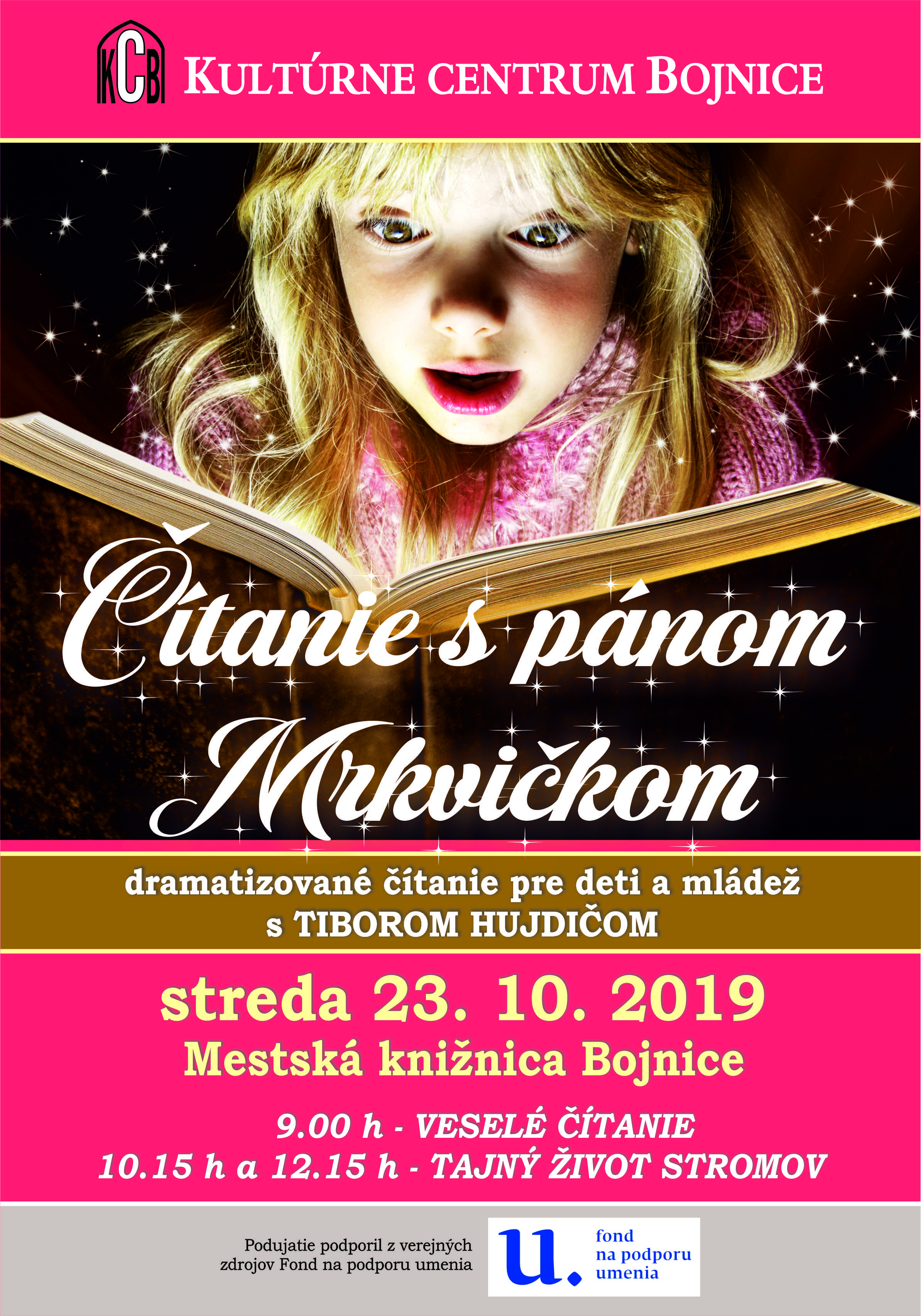 Príďte k nám do knižice a zažijete tradične netradičné čítanie s pánom Mrkvičkom. Pre mladších žiakov je pripravené veselé čítanie a pre starších žiakov zaujímavé čítanie o živote stromov. Podujatia podporil z verejných zdrojov Fond na podporu umenia.
