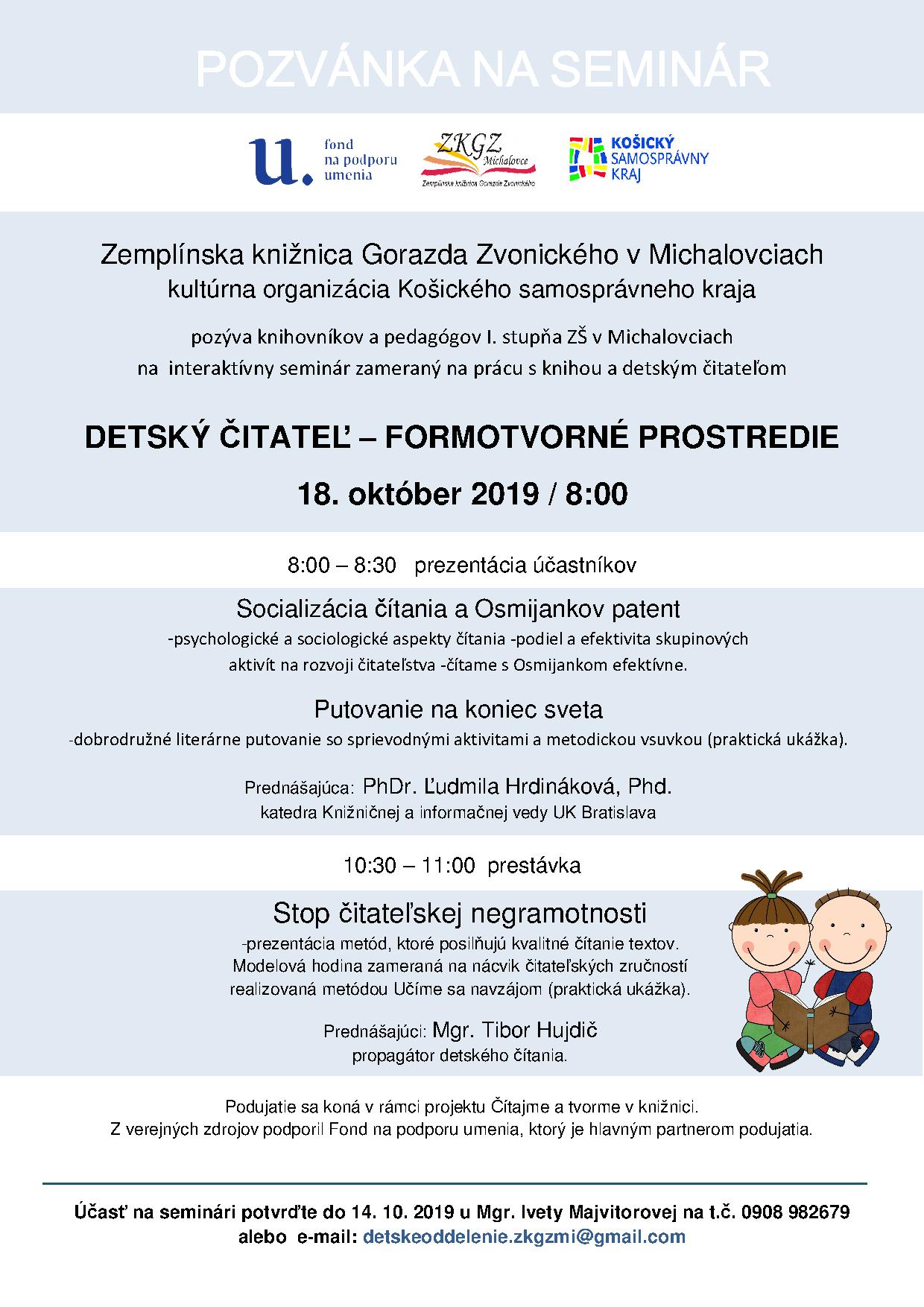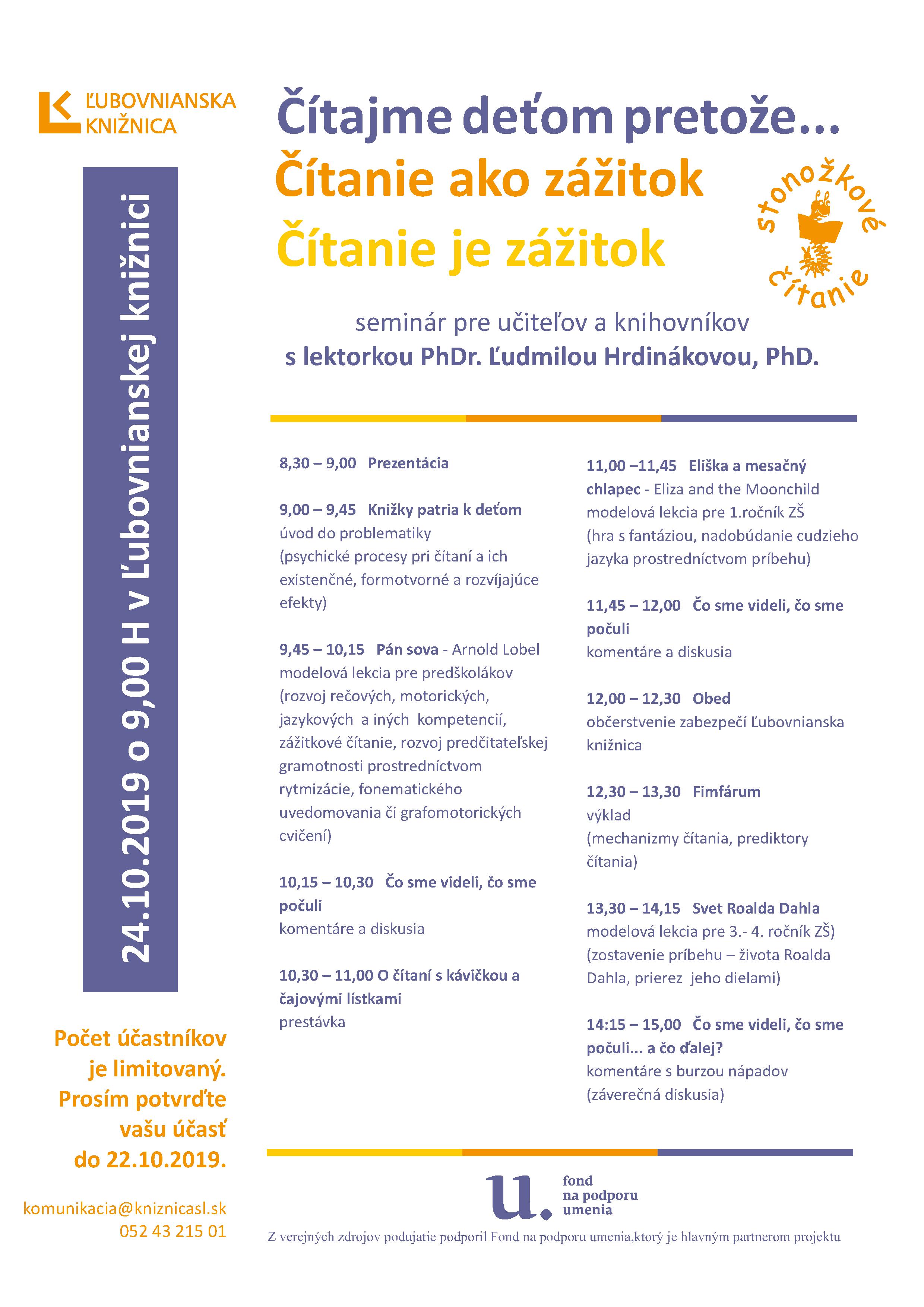 Seminár pre učiteľov a knihovníkov s lektorkou PhDr. Ľudmilou Hrdinákovou, PhD. sa uskutoční 24.10.2019.