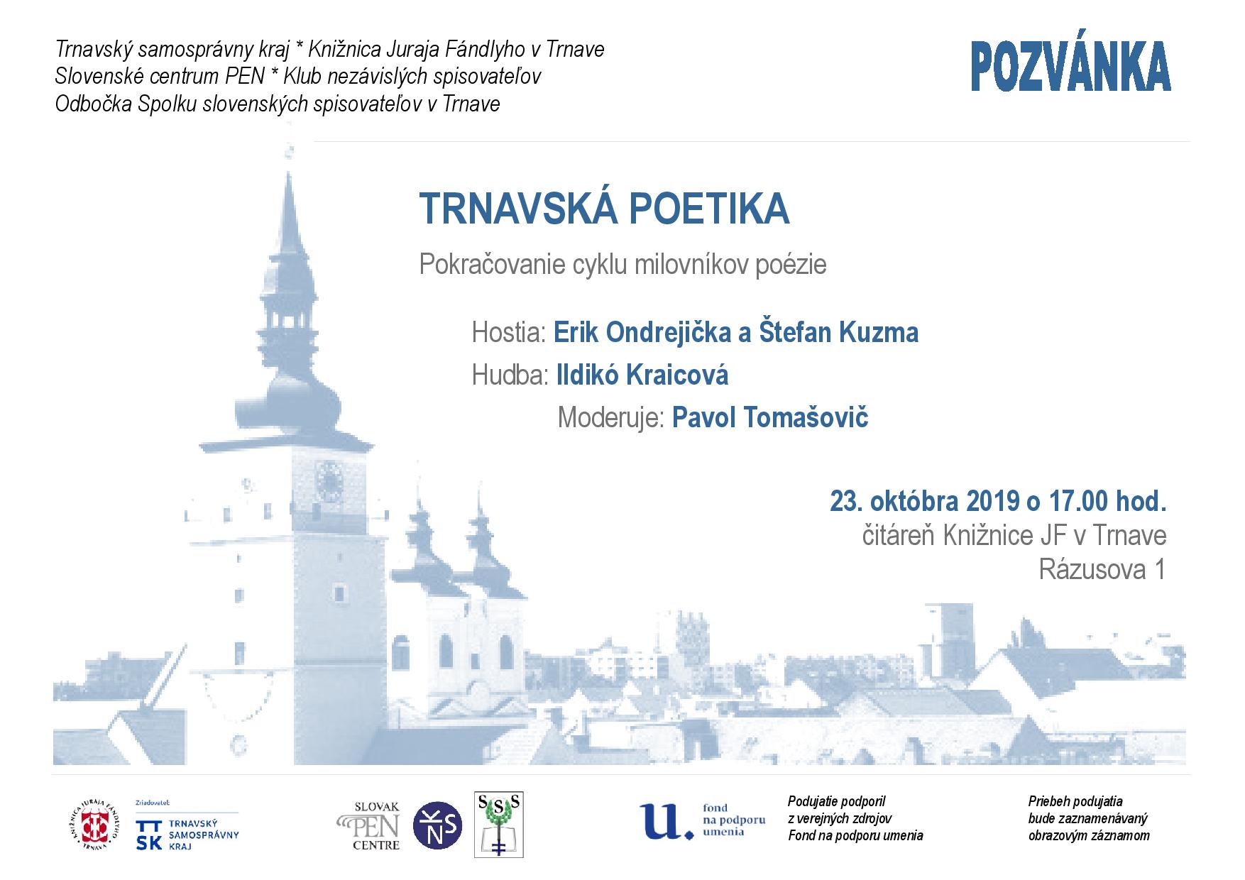 Pokračovanie cyklu pre milovníkov poézie. Hostia: Erik Ondrejička a Štefan Kuzma. Hudba a spev: Ildikó Kraicová Moderuje Pavol Tomašovič
