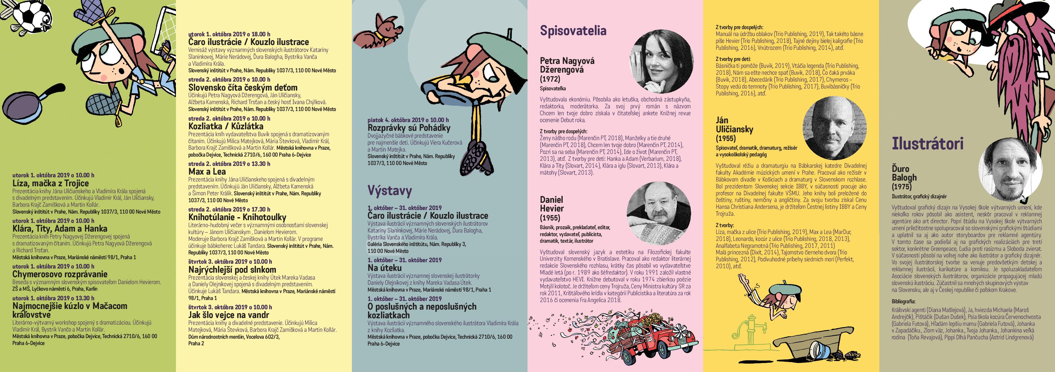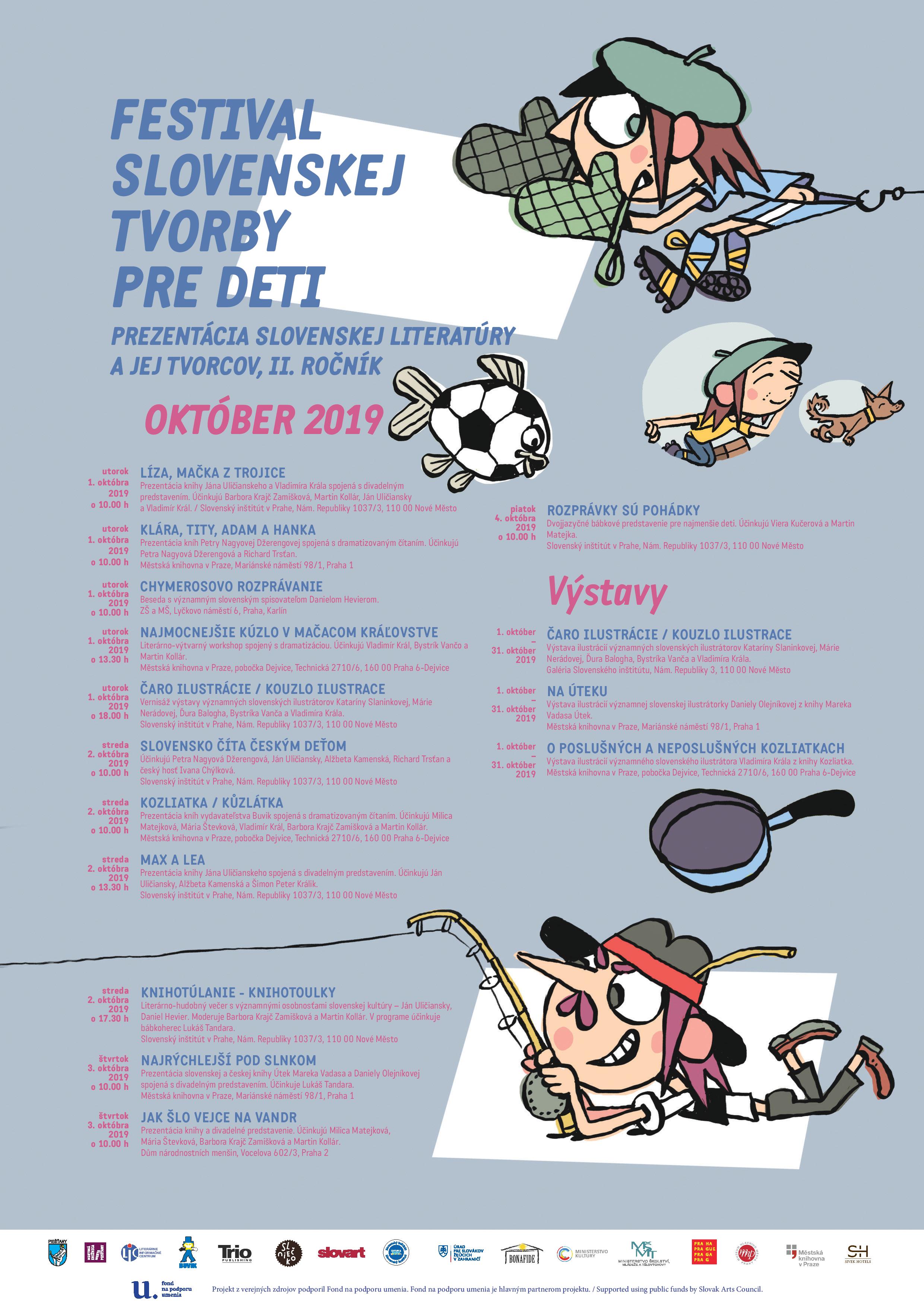 Projekt je zameraný na prezentáciu tvorby slovenských umelcov formou prezentácií autorov, ich diel, autorských čítaní, dramatizácií, tvorivých dielní, výstav knižných ilustrácií. Projekt prináša možnosť rozvíjať si vedomosti formou interaktívnych workshopov, tvorivých dielní, stretnutí so spisovateľmi, verejných čítaní, počúvaní rozprávok. Cieľovou skupinou je české obyvateľstvo, slovenská komunita žijúca v ČR, odborná verejnosť, pedagógovia, turisti, návštevníci Prahy.