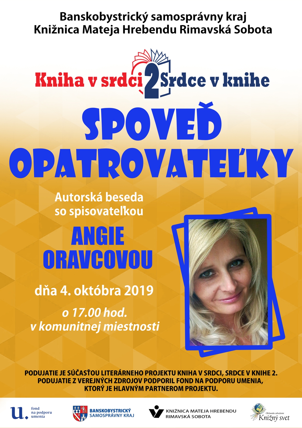 Literárny projekt Kniha v srdci, srdce v knihe 2 pozostáva z niekoľkých podujatí, ktorých prioritným cieľom je prezentácia literatúry, snaha o zvýšenie záujmu o čítanie a knihy.