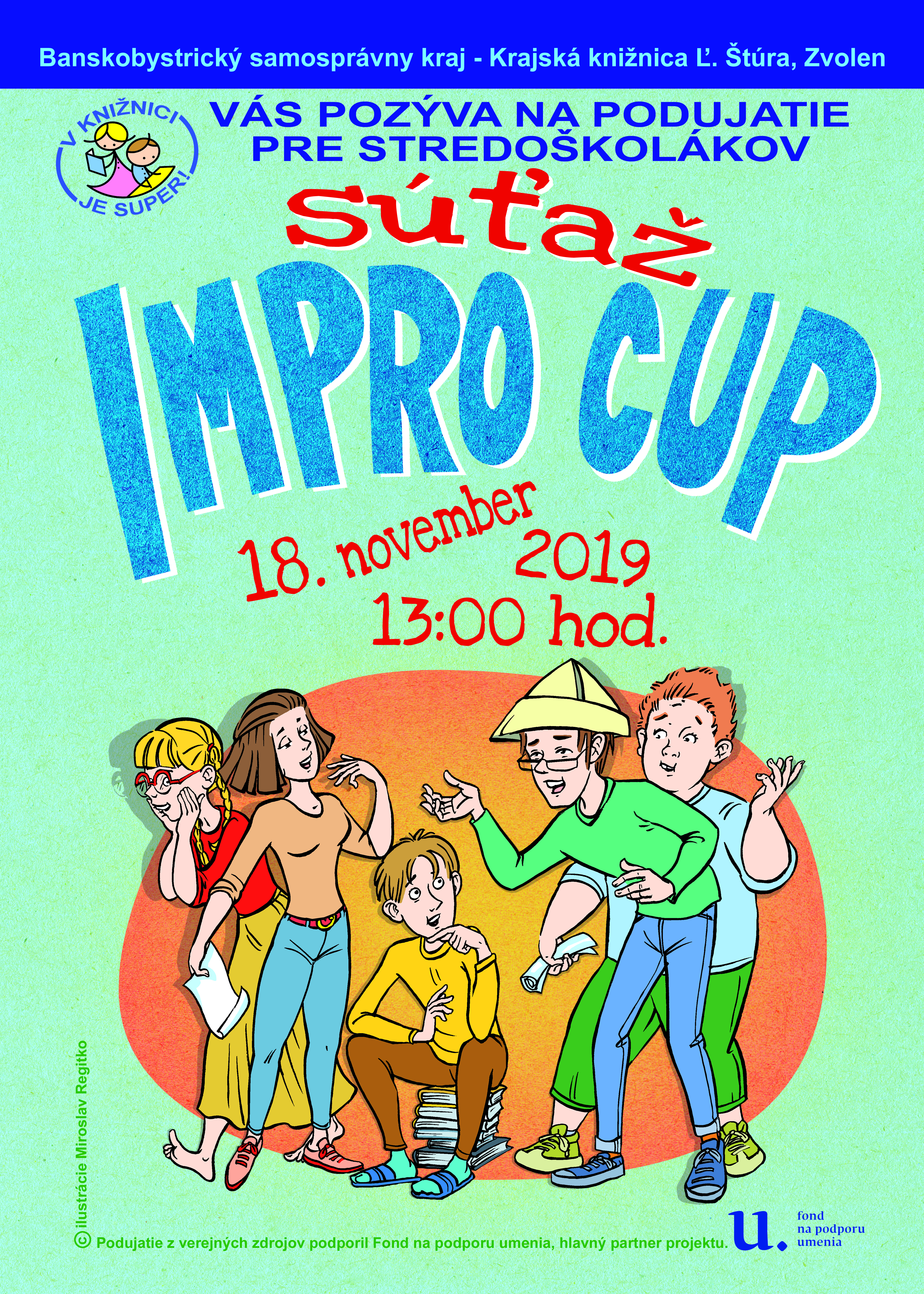 V rámci projektu V knižnici je super! sa uskutočnia podujatia pre stredoškolskú mládež, päť tréningov improvizácie Improvizuj na M a súťaž Impro Cup.