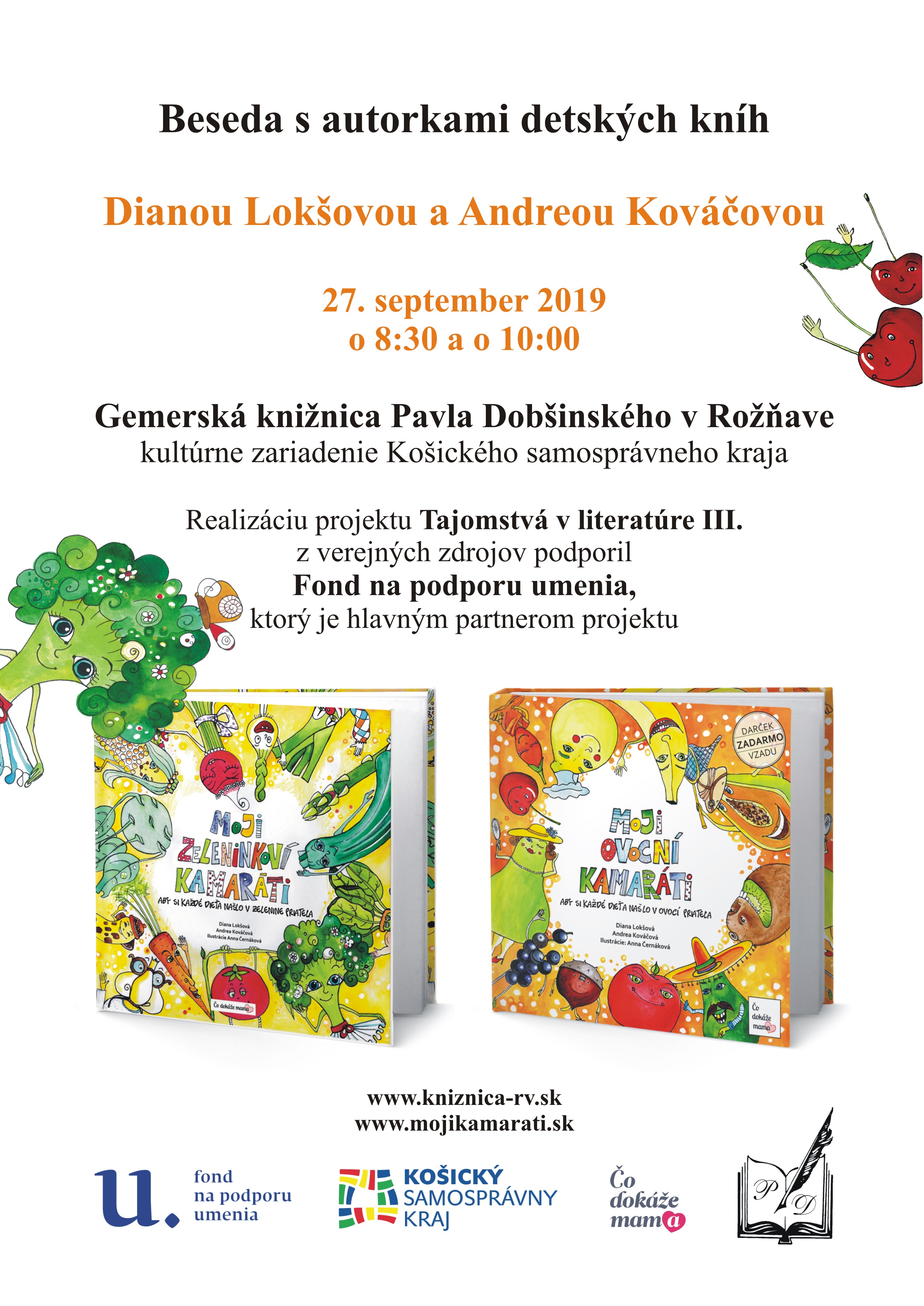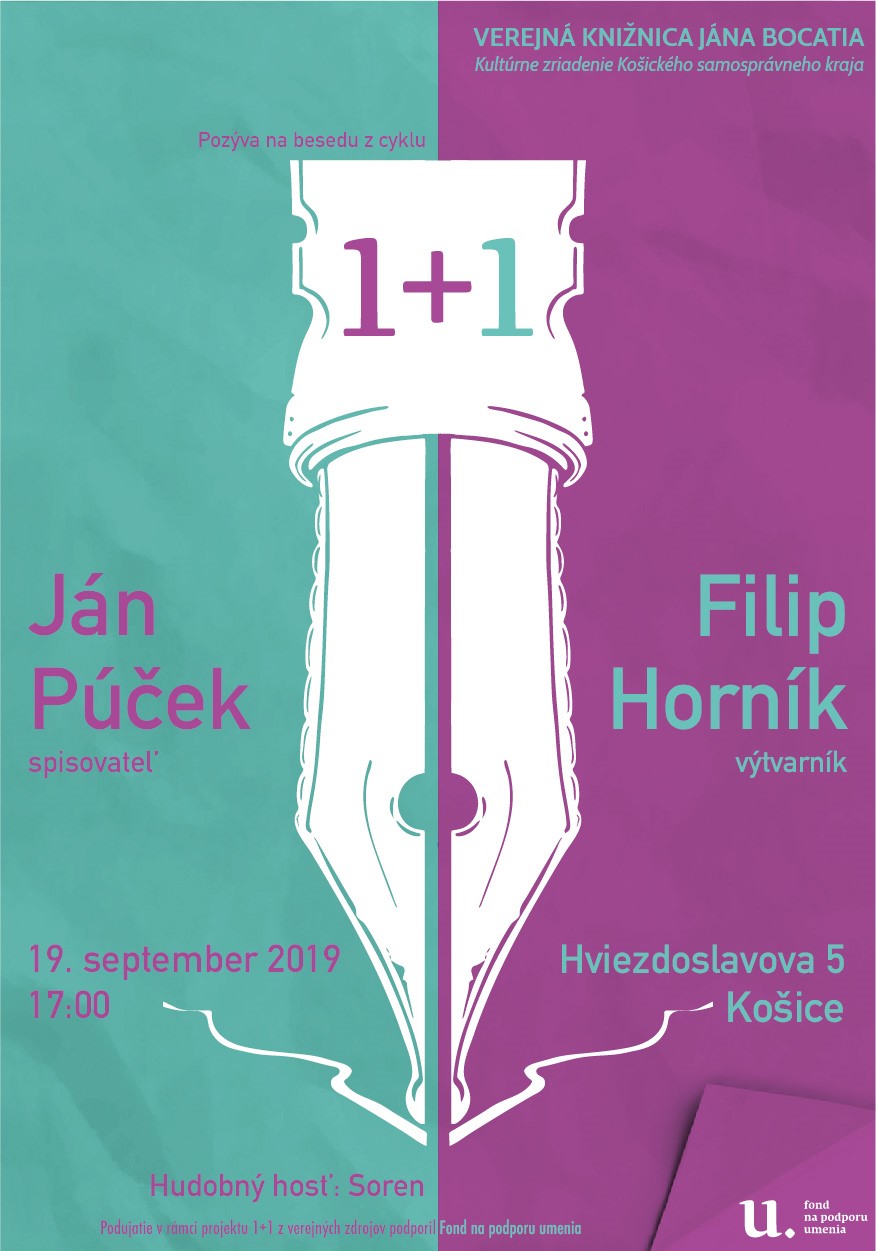 Verejná knižnica Jána Bocatia v Košiciach pozýva na ďalšie stretnutie so zaujímavými hosťami, ktoré pripravuje v rámci obľúbeného cyklu besied 1+1. Beseda s prozaikom Jánom Púčekom a ilustrátorom Filipom Horníkom bude vo štvrtok 19. septembra o 17:00 v centrálnej požičovni knižnice na Hviezdoslavovej ul. 5. S hosťami sa budeme rozprávať o literatúre, čítaní, ilustrácií, dizajne, o živote na dedine a tiež o ich spoločnej záľube - výrobe vína. Hudobným hosťom večera bude skupina Soren.