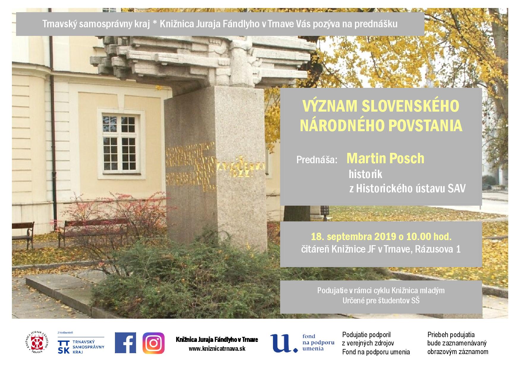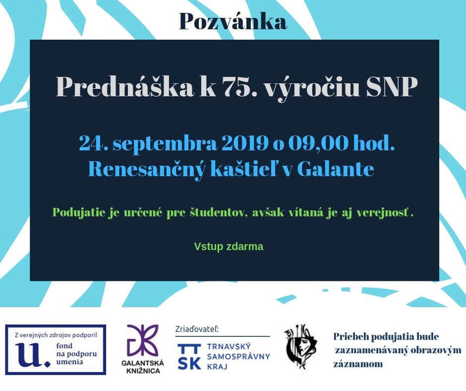 V rámci cyklu podujatí "Poznanie ukryté v knihe" organizujeme prednášku k 75. výročiu SNP