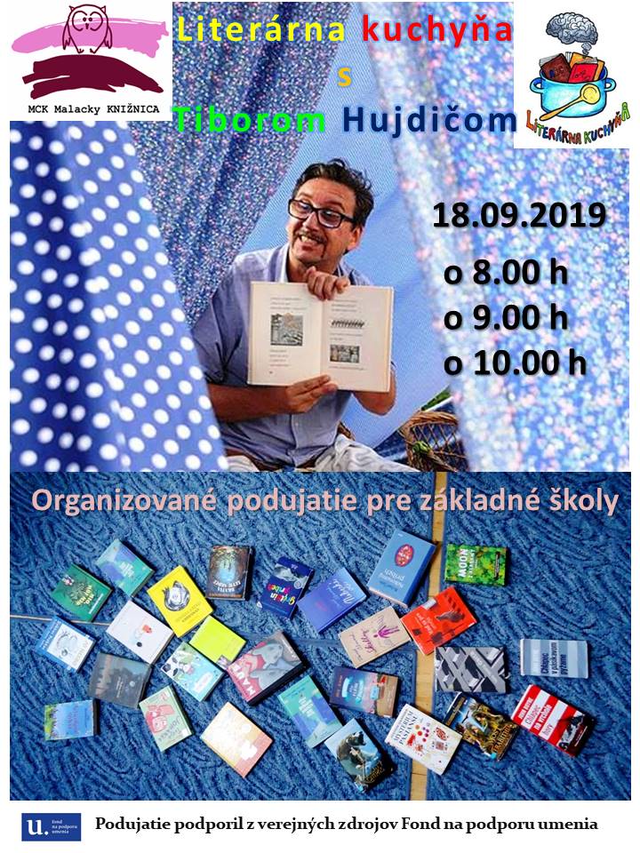 V Literárnej kuchyni sme namiešali tohtoročnú prvú jesennú výchovno-vzdelávaciu kašu, ktorá podporuje čitateľskú gramotnosť, čiže trávenie kníh u detí a mládeže a ich záujem o literatúru. Pripravili sme pre žiakov organizované stretnutie s Tiborom Hujdičom alias „pánom Mrkvičkom“. Knihy pre deti najprv testuje sám na sebe a až keď si je istý, že sú dobré, šíri o nich zvesť medzi deťmi, rodičmi, učiteľmi a knihovníkmi. Je jedným z tých, ktorí hľadajú cesty, ako priviesť deti k čítaniu.