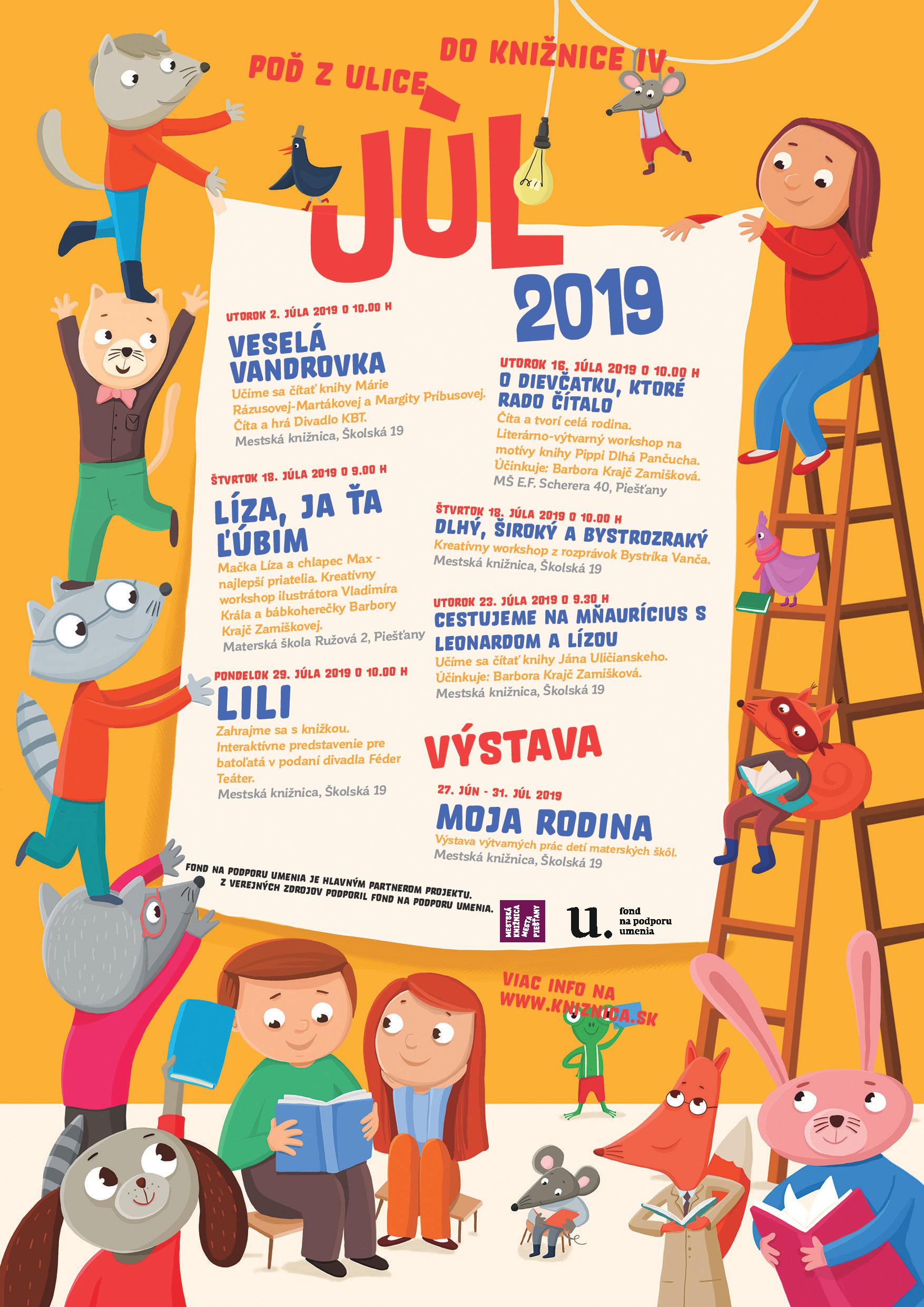 Projektom Poď z ulice do knižnice IV. chceme u detí v predškolskom a školskom veku podporiť osvojenie si čitateľských zručností. V spolupráci s rodičmi a cez zaujímavé aktivity chceme prispieť k budovaniu pozitívneho vzťahu detí ku knihe a položiť základy ich celoživotného vzdelávania. Ústrednými aktivitami sú: cyklus podujatí Zahrajme sa s knižkou, Číta a tvorí celá rodina, Učíme sa čítať knihy, Interaktívne dramatizácie, Úlet s knihou/Uleť s knihou, výtvarná súťaž pre žiakov MŠ a iné.