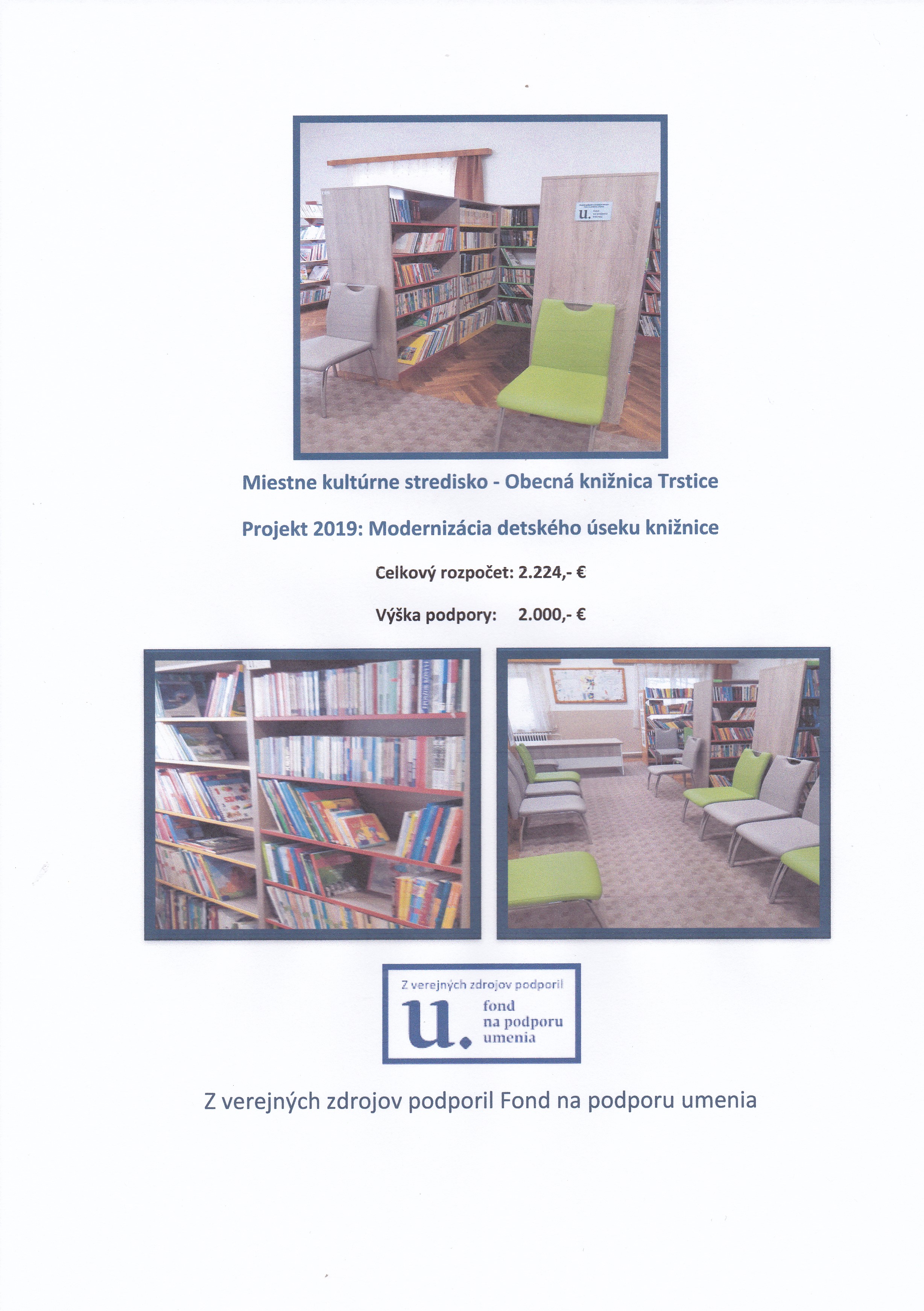 Naša žiadosť bola zameraná na obohatenie knižničného fondu (nákup kníh), a táto bola podporená a na obnovu knižničného fondu sme dostali finančné prostriedky vo výške 1 000 eur pričom 200 eur je spolufinancovanie projektu zo strany obce.