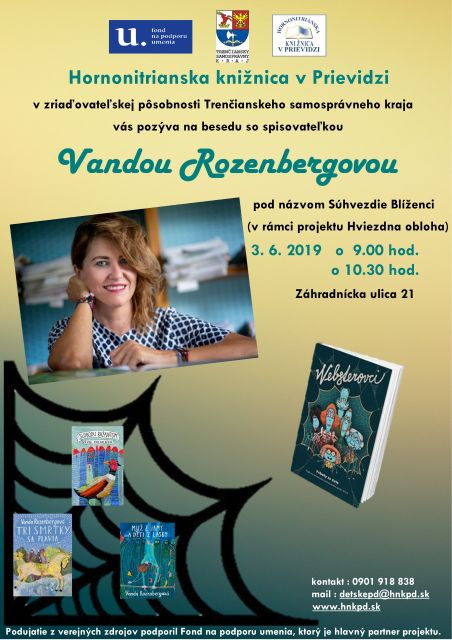 Besedy s Vandou Rozenbergovou o M.R. Štefánikovi, hviezdach, znameniach, osudoch, ... Podujatia sa budú konať o 9.00 a 10.30 hod. v divadielku Hornonitrianskej knižnice v Prievidzi.