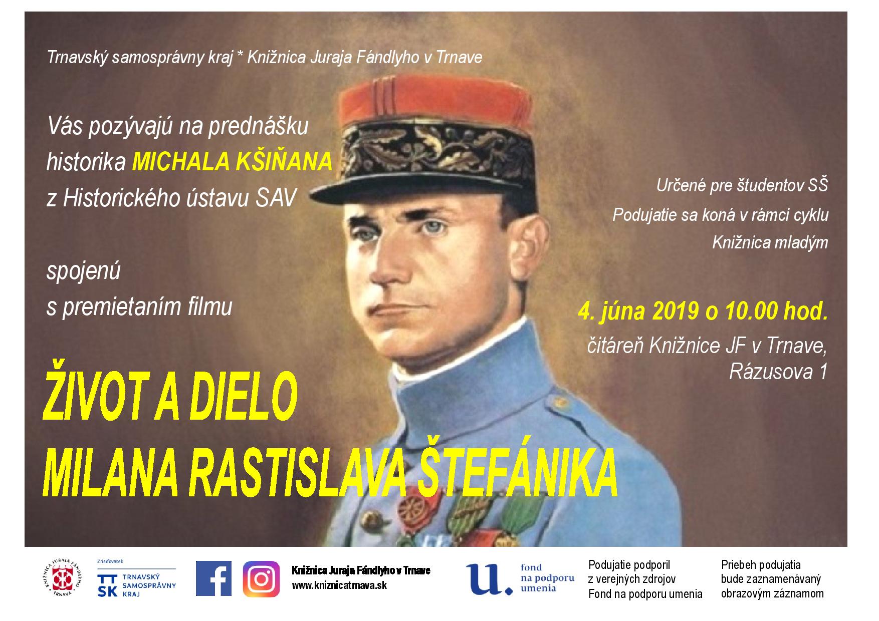 Prednáška historika Michala Kšiňana z Historického ústavu SAV spojená s premietaním filmu sa koná 4. 6. 2019 o 10.00 hod. v čitárni Knižnice JF v Trnave