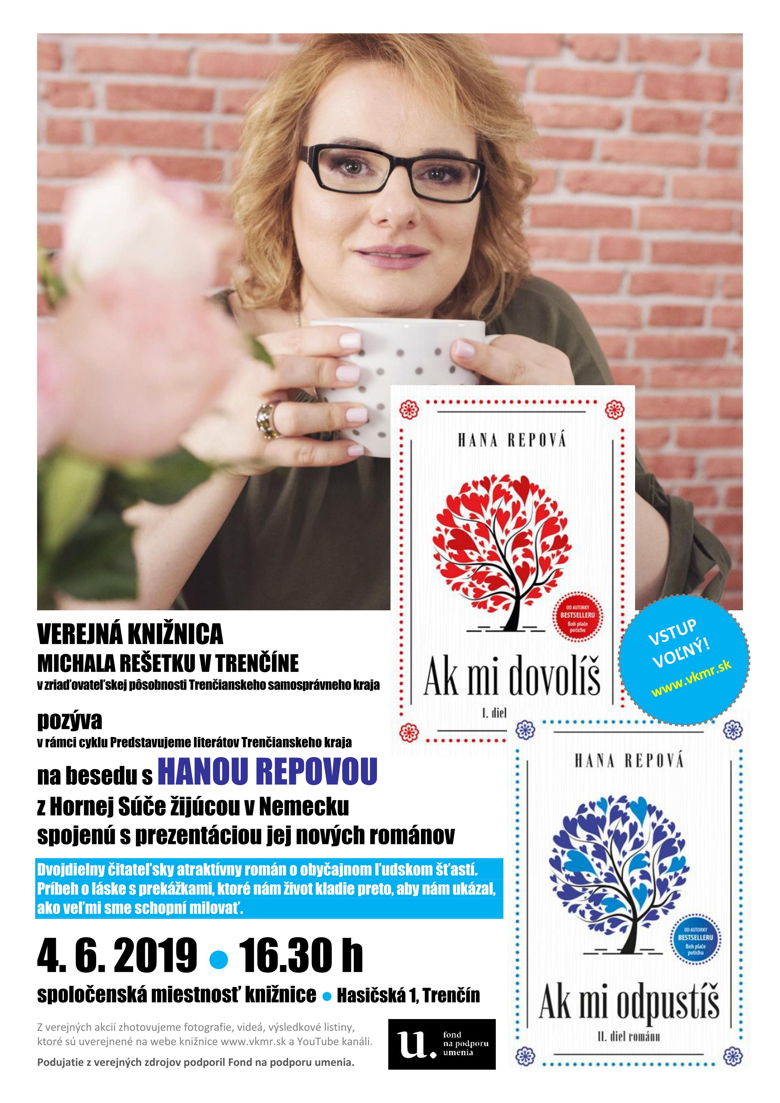 Rozvoj komunitných aktivít knižnice organizovaním vzdelávacích a literárno-spoločenských podujatí je hlavným zámerom projektu. Cieľom je realizovať podujatia s dôrazom na zvyšovanie vedomostnej úrovne, propagujúce regionálne osobnosti a udalosti, rozvíjajúce čitateľskú gramotnosť a podporu čítania. Aktuálne pozývame na besedu s regionálnou spisovateľkou Hanou Repovou nielen o jej najnovšej knižke.