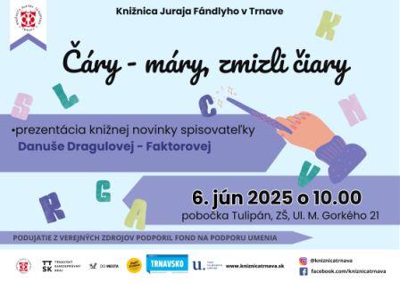 Viete si predstaviť, žeby cez noc zmizli z kníh všetky čiary? Určite sa to dozvedia deti, ktoré sa zúčastnia besedy so spisovateľkou Danušou Dragulovou – Faktorovou. Je určená najmä deťom mladšieho školského veku. V tomto roku vychádza ďalšie vydanie a vy môžete byť pri tom.