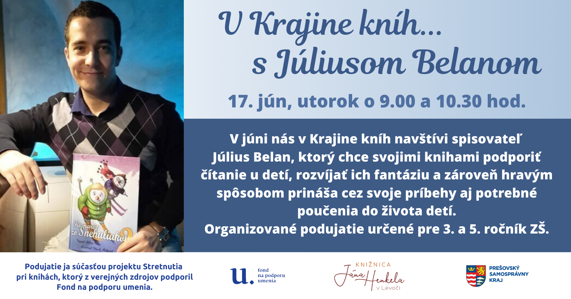 V rámci projektu Stretnutia pri knihách sme pre žiakov ZŠ pripravili cyklus besied s tvorcami kníh. V júni nás navštívi spisovateľ Július Belan.