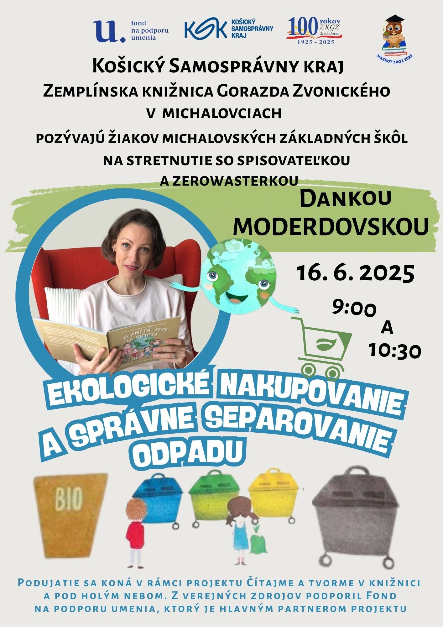 Stretnutie so spisovateľkou, blogerkou a ekologickou aktivistkou Dankou Moderdovskou, ktorá sa venuje témam ako život bez odpadu, ochrana prírody a udržateľný život. Danka Moderdovská je autorkou známej detskej knižnej série „Planéta Zem sa usmieva“,