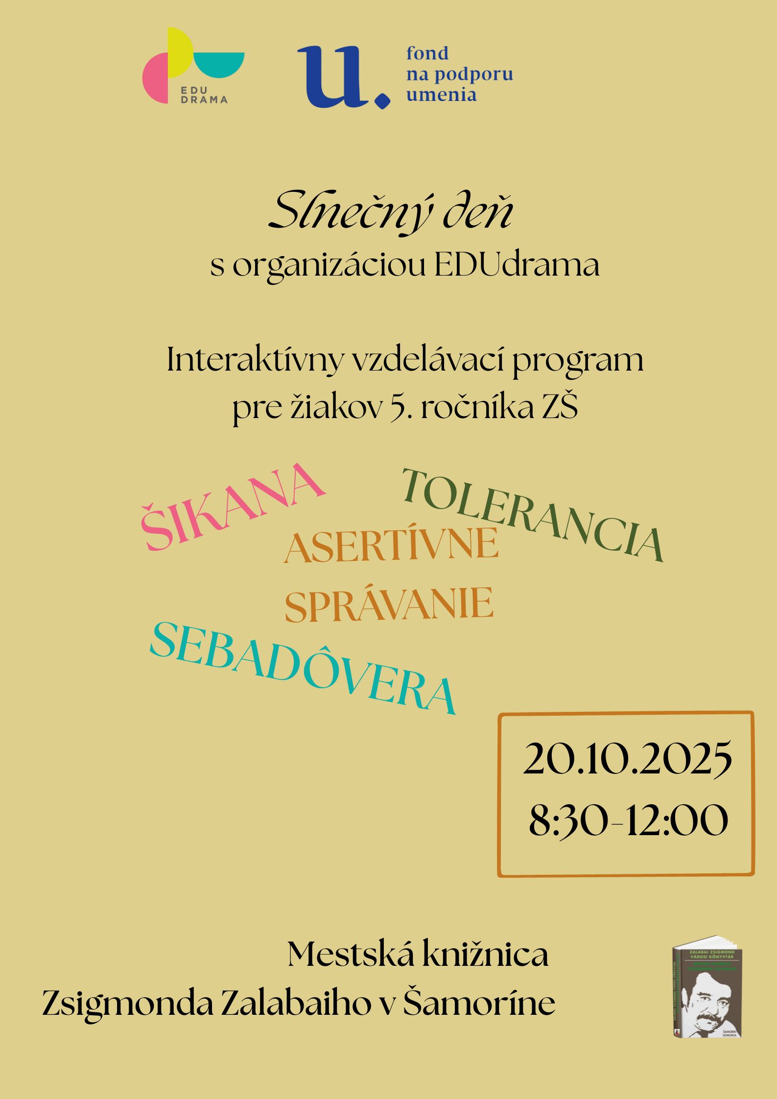 Interaktívny vzdelávací program EDUdrama: Slnečný deň pre žiakov 5. ročníka ZŠ sa venuje témam šikany, tolerancie a sebadôvery. Prostredníctvom príbehu z poviedky R. Bradburyho deti prežijú situácie, ktoré im pomôžu lepšie pochopiť odlišnosť a jej prijatie.