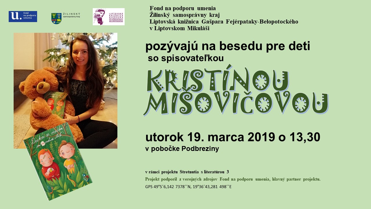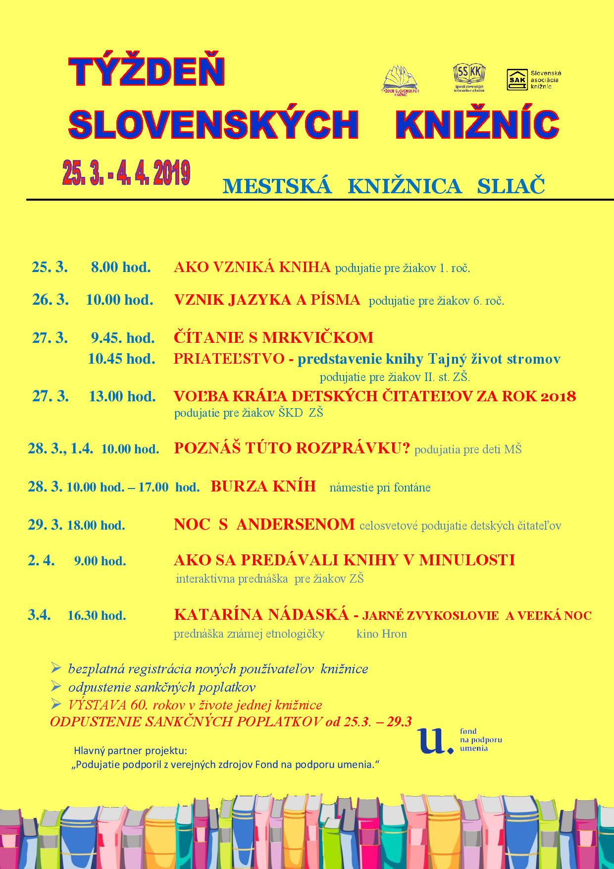 Literárne hodiny, venovaná spisovateľke M. Rázusovej Martákovej - Chlapčekovo leto, ktorej súčasťou bude prezentácia zakúpených nových kníh za podpory FPU. Poduajtia sa uskutočnia v dňoch 27. a 28. marca 2019 so začiatkom o 10.00 hod. v Obecnej knižnici v Smižanoch.