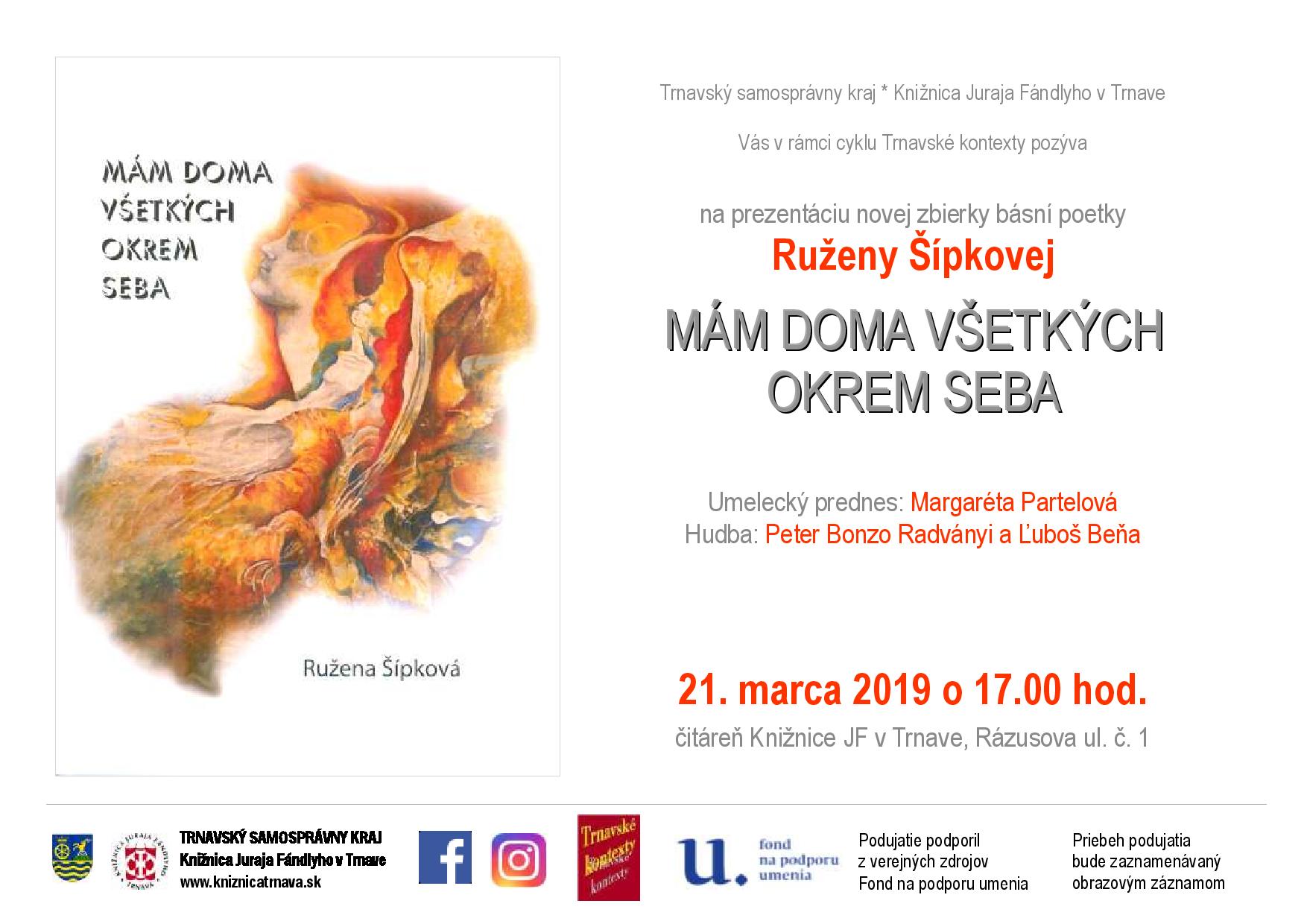 Prezentácia novej zbierky básní poetky Ruženy Šípkovej. Umelecký prednes: Margaréta Partelová, hudba: Peter Bonzo Radványi a Ľuboš Beňa