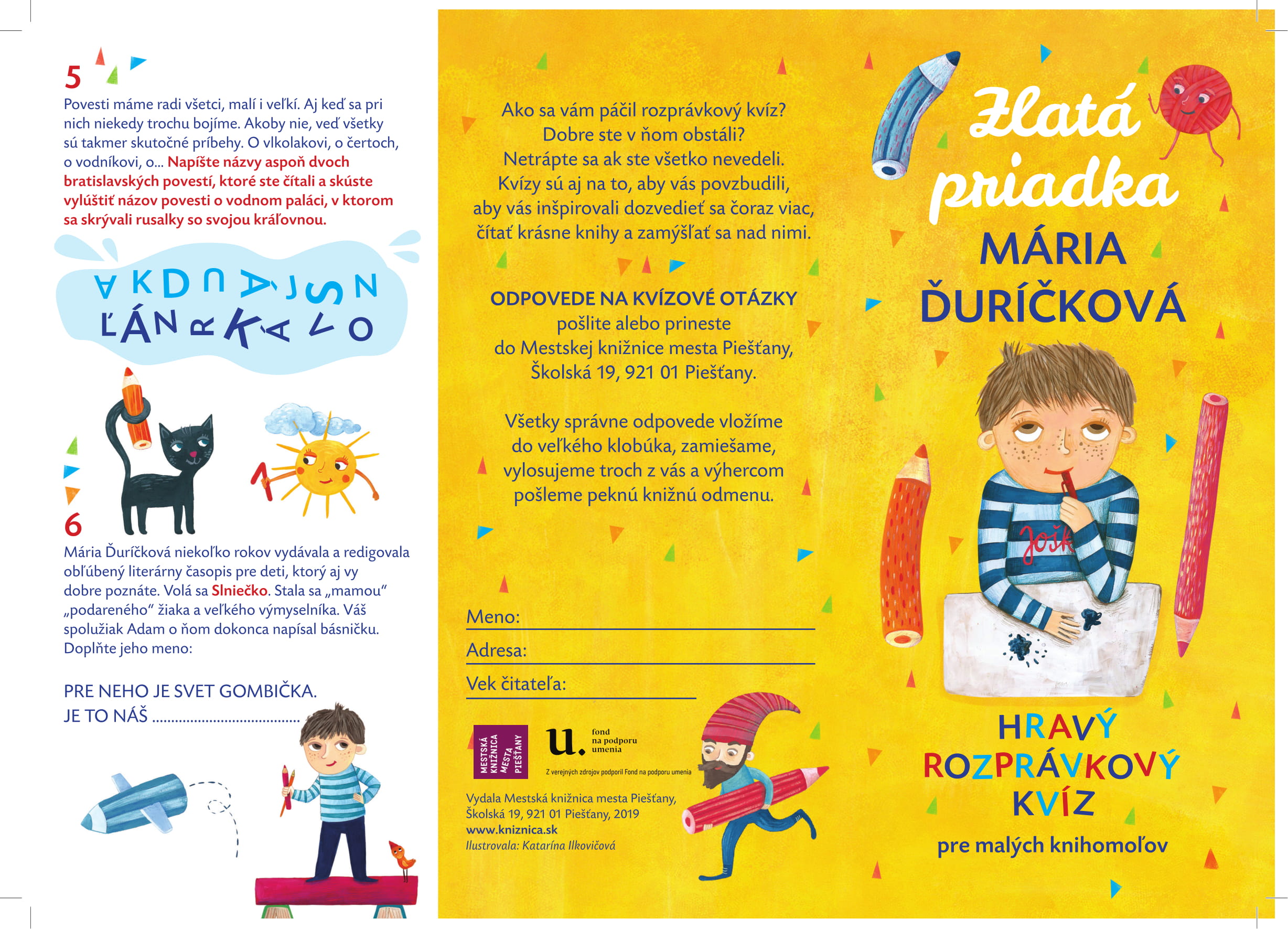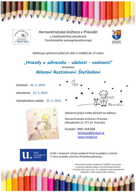 V rámci projektu Literárna Prievidza pokračuje aj v roku 2019 vyhlasujeme výtvarnú súťaž pre deti a mládež do 15 rokov "Hviezdy a súhvezdia - udalosti - osobnosti".