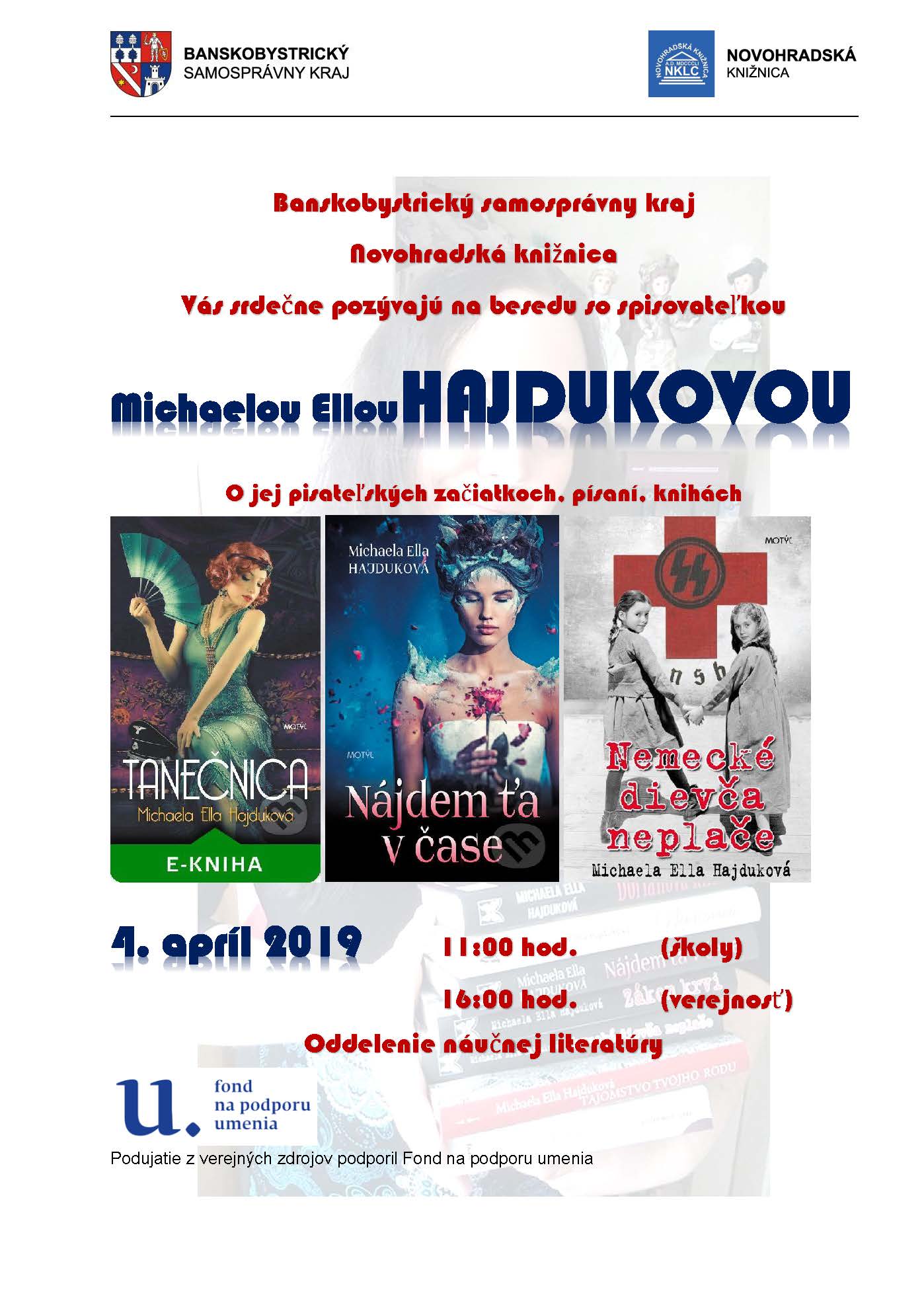 Beseda so slovenskou spisovateľkou Michaelou Ellou Hajdukovou .