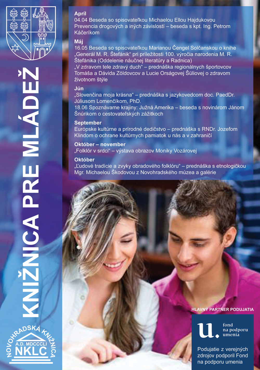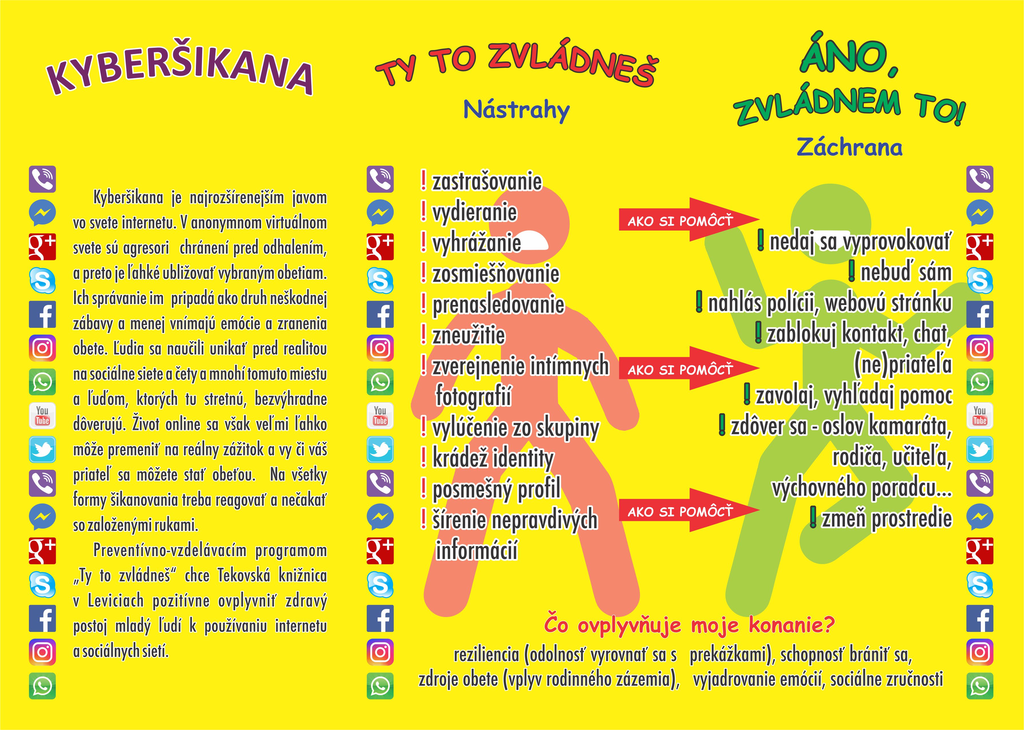 Tekovská knižnica v Leviciach projektom oslovuje dospievajúcu mládež, dospelých čitateľov a seniorov. Je zložený z troch častí. Preventívno-vzdelávacím programom "Ty to zvládneš" pozitívne ovplyvňuje postoj študentov k používaniu internetu a sociálnych sietí. "Popoludniami so slovenskou knihou" chceme dospelým čitateľom umožniť osobné stretnutie s obľúbenými autormi. Treťou časťou "Oživujme tradície" chceme Interaktívnym podujatím vzbudiť záujem o regionálne zvyky, tradície a slovesnosť.