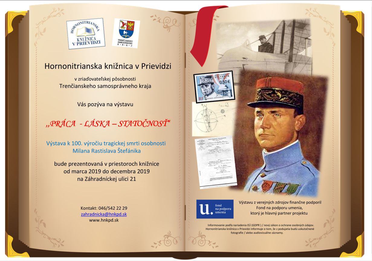 V rámci projektu "Literárna Prievidza pokračuje aj v roku 2019" realizujeme výstavu venovanú k 100. výročiu úmrtia M. R. Štefánika.