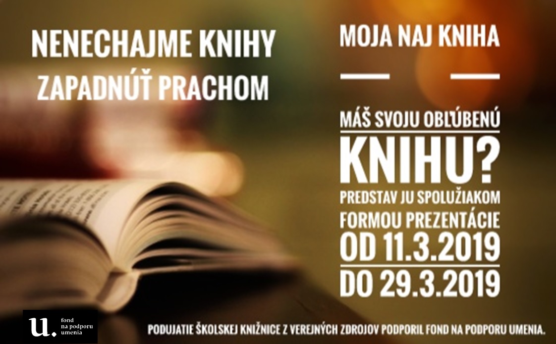 Školská knižnica Spojenej školy, SNP 16 v Sabinove organizuje od 11. 3. 2019 do 29. 3. 2019 projektovú aktivitu pre žiakov pod názvom Moja naj kniha.
