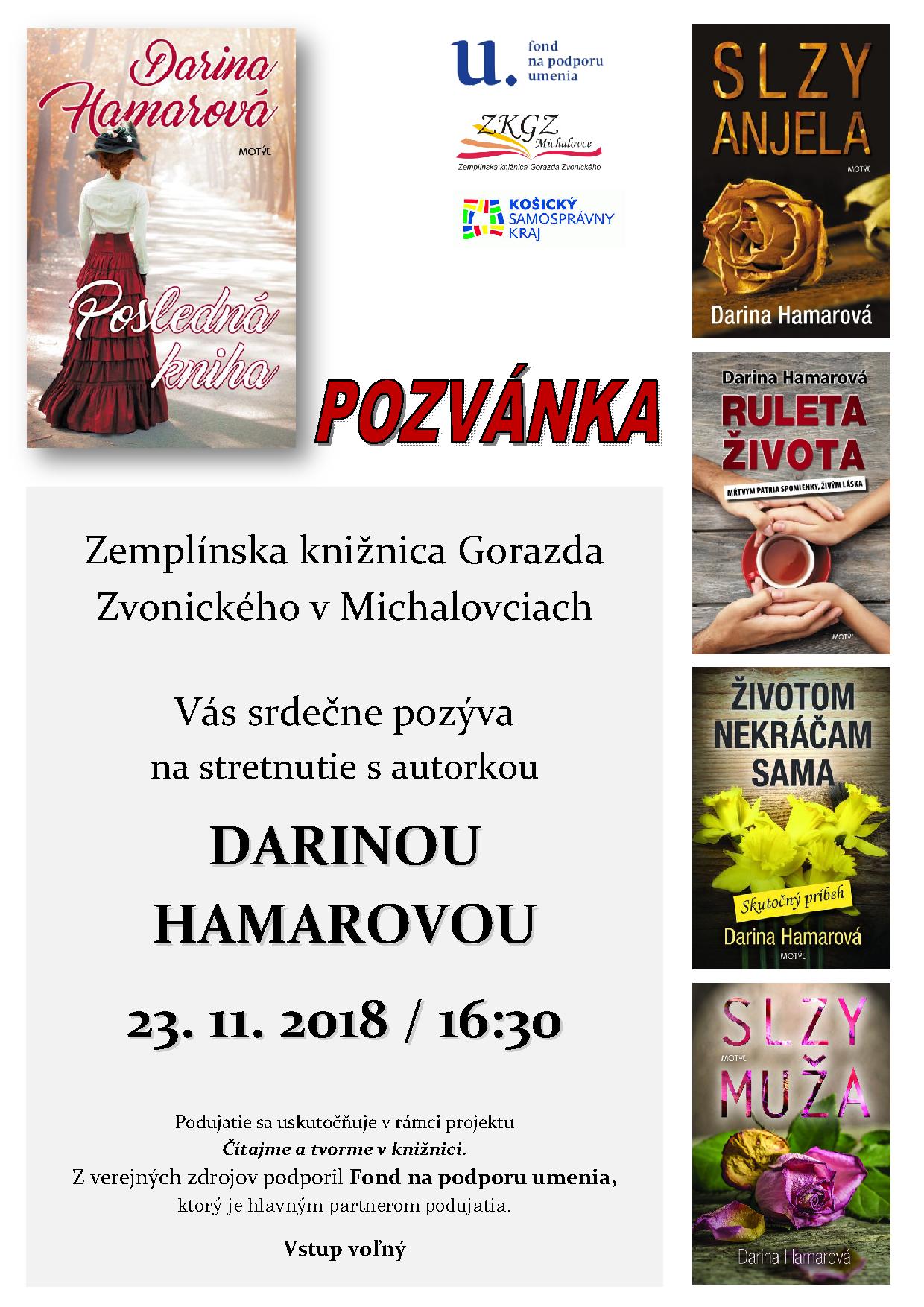 Stretnutie so spisovateľkou Darinou Hamarovou spojené s autogramiádou.