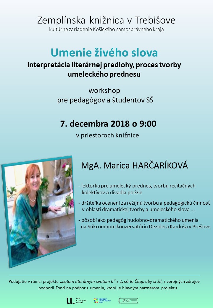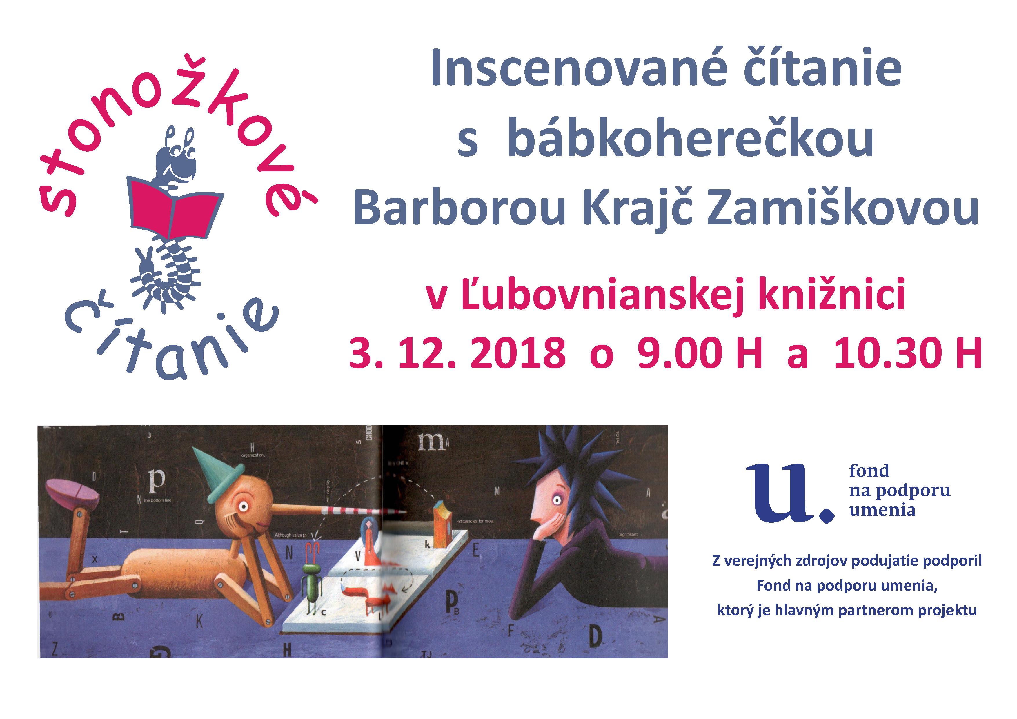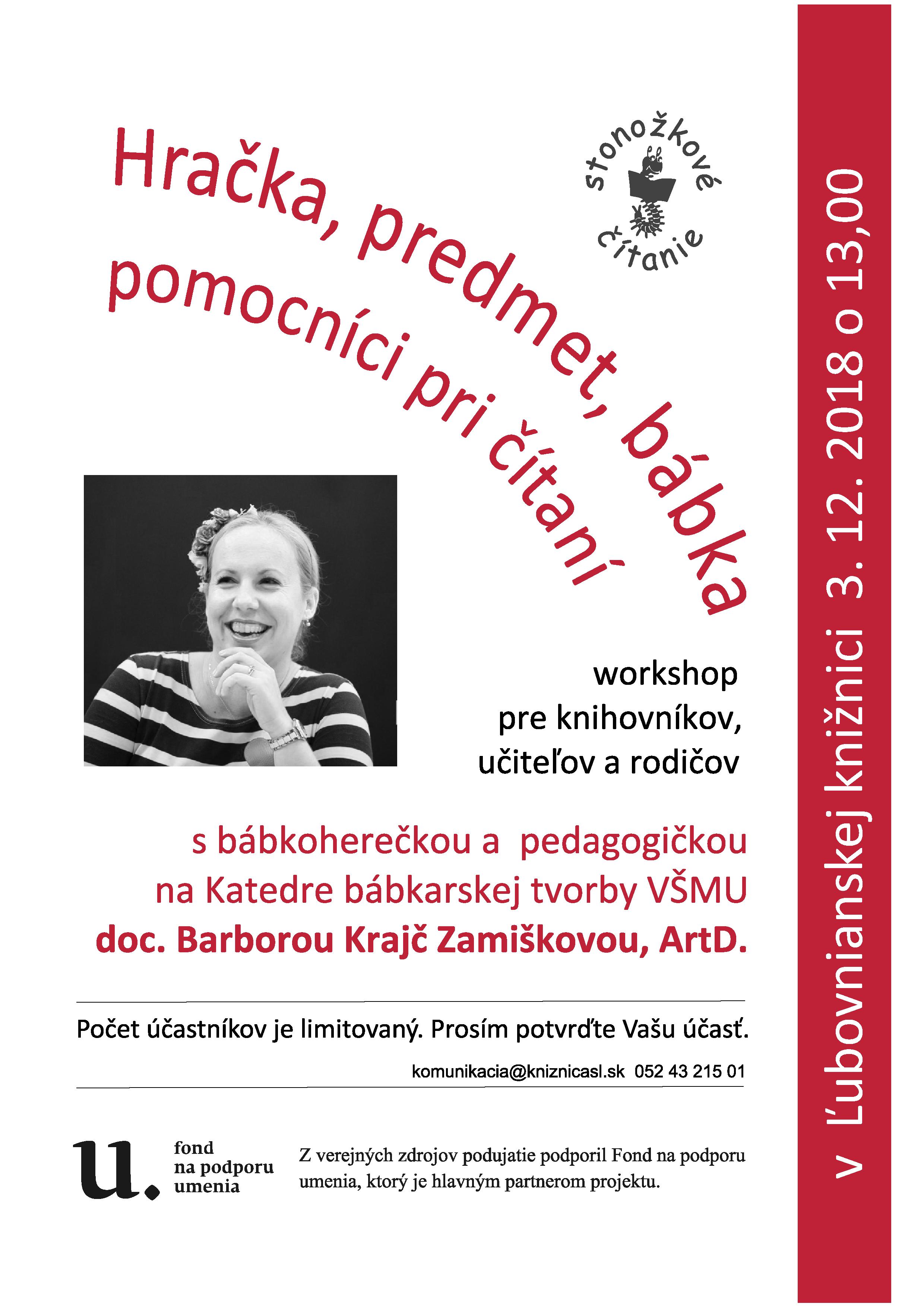 Workshop pre učiteľov pod vedením bábkoherečky a pedagogičky na Katedre bábkarskej tvorby VŠMU doc. Barbory Krajč Zamiškovej, ArtD. sa uskutoční 3.12.2018 o 13.00h v Ľubovnianskej knižnici