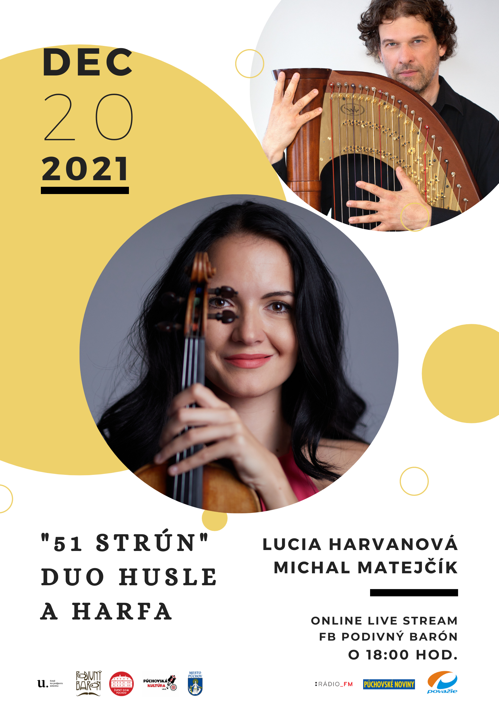 51 strún a len dva nástroje! Pozývame vás už na tradičný predvianočný online koncert v podaní koncertnej majsterky Slovenského národného divadla, huslistky Lucii Harvanovej a sólovým harfistom Michalom Matejčíkom. Vyčarujte si tú pravú Vianočnú atmosféru naladením komorného koncertu prostredníctvom live streamu na www.facebook.com/podivnybaron.