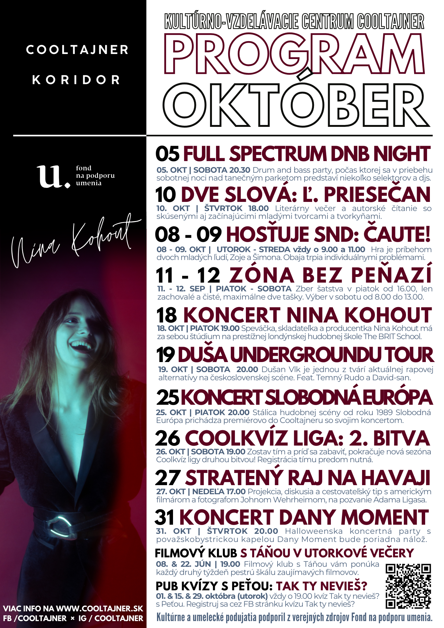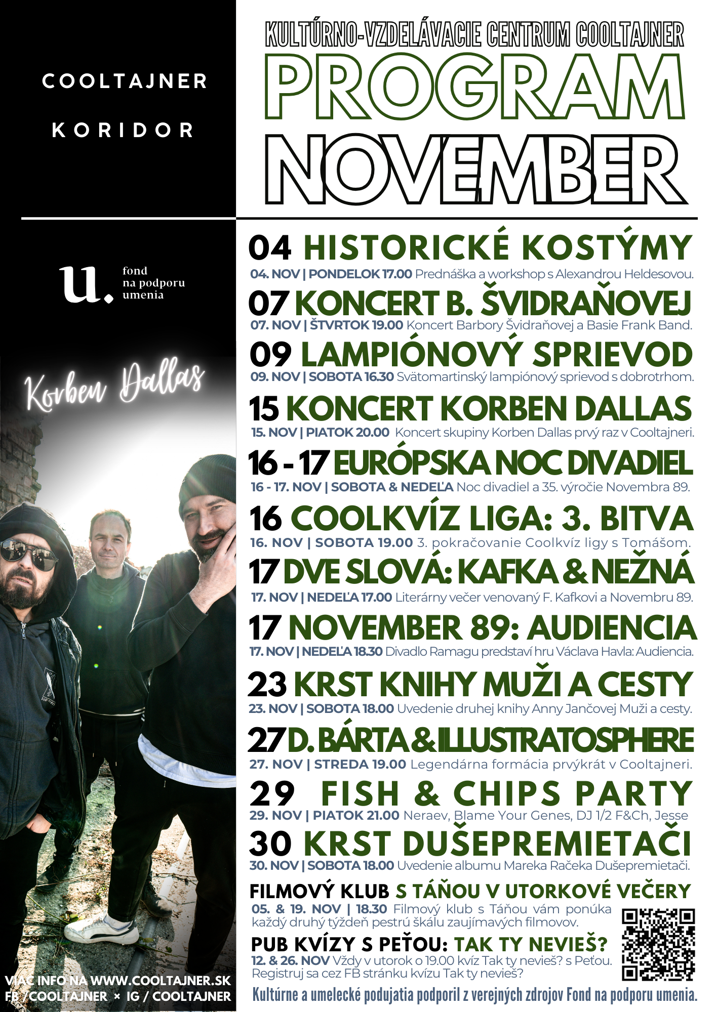 Pozývame vás na novembrový program Kultúrneho centra Cooltajner.