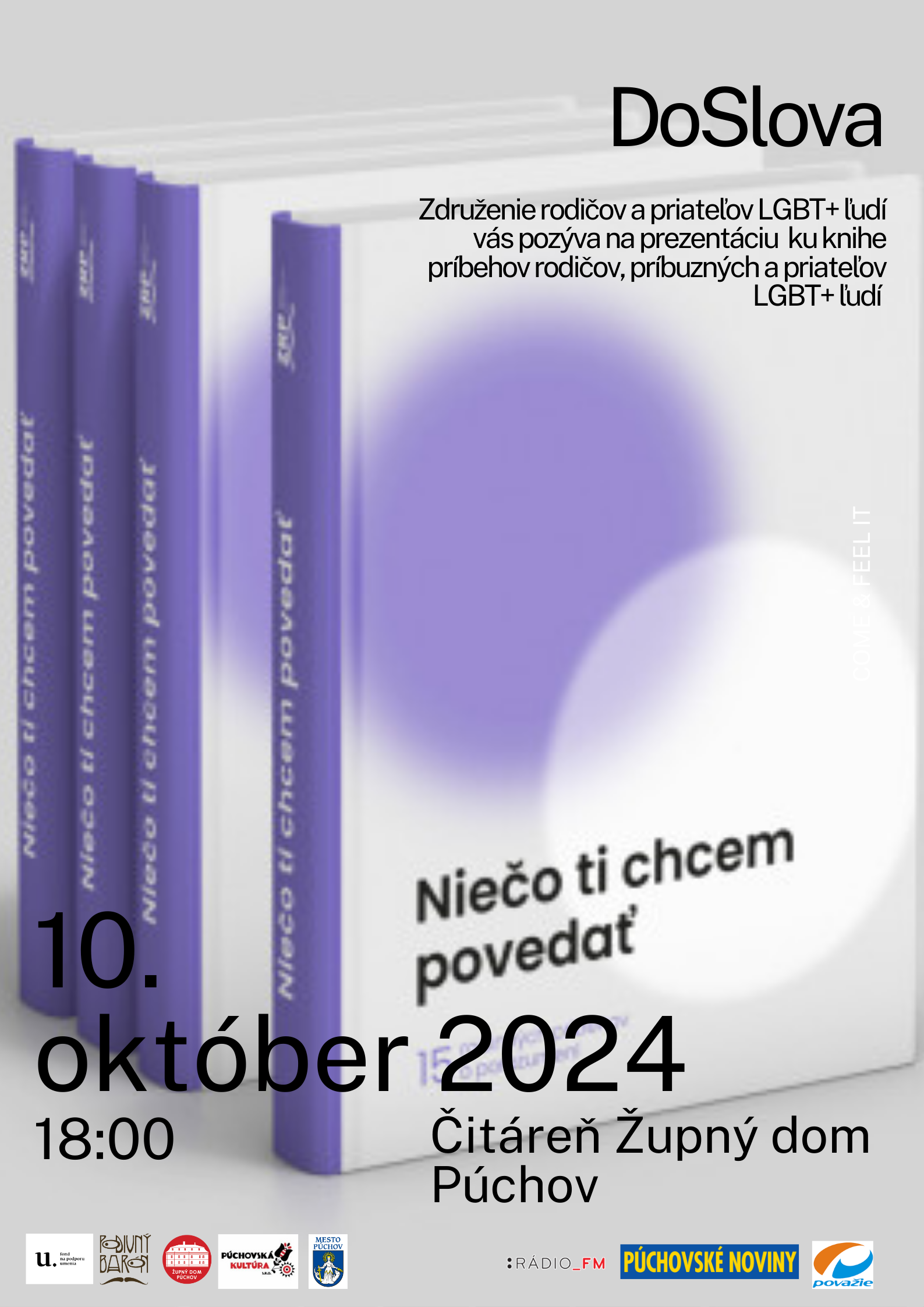Združenie rodičov a priateľov LGBT+ ľudí Vás pozýva na prezentáciu a diskusiu ku knihe príbehov rodičov, príbuzných a priateľov LGBT+ ľudí „Niečo ti chcem povedať“ – 15 rodinných príbehov o porozumení. Diskutovať budú členky a členovia združenia.