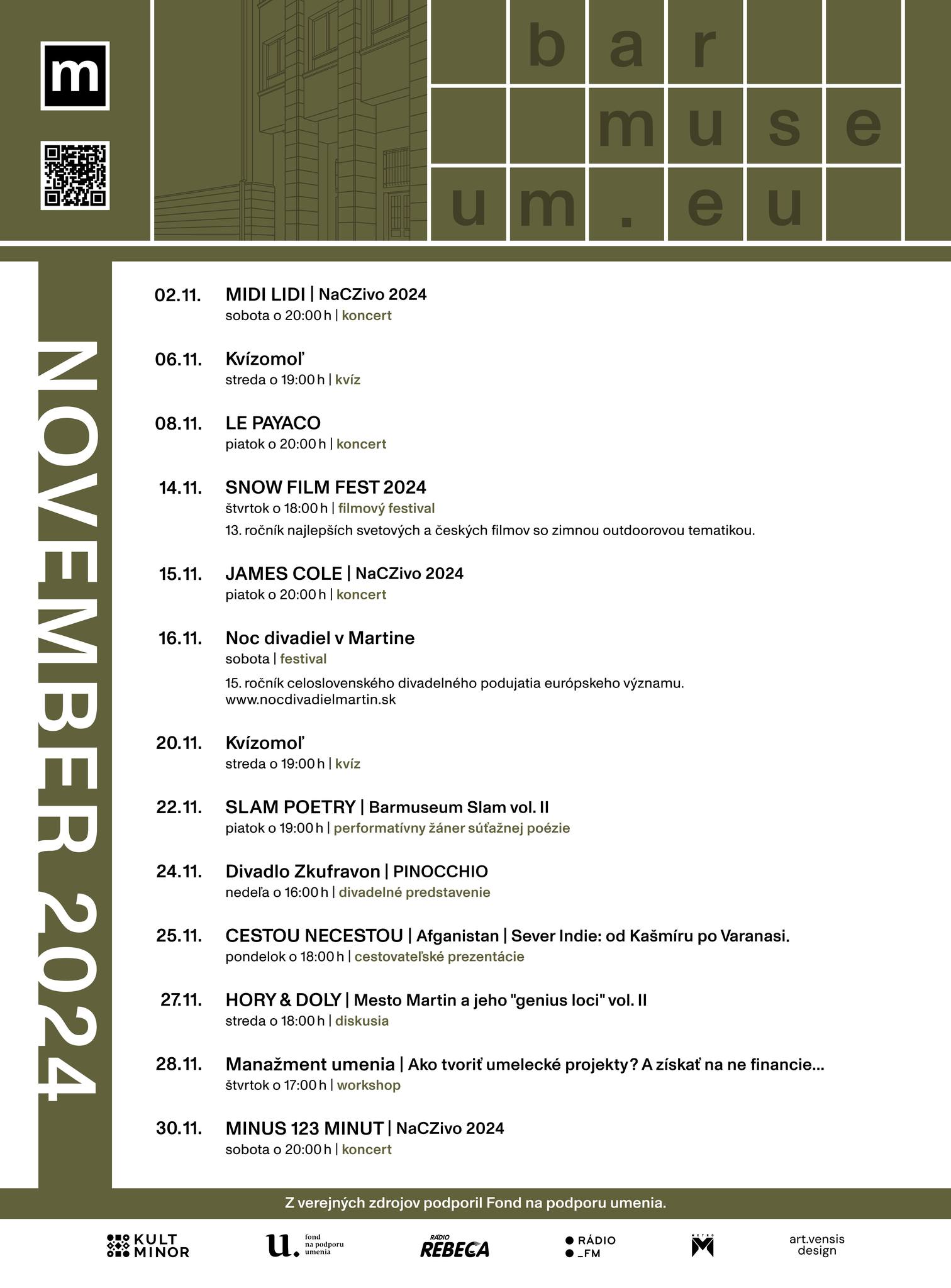 Celomesačný program na november V novembri vás čaká pestrá paleta podujatí, kde si každý nájde niečo pre seba!