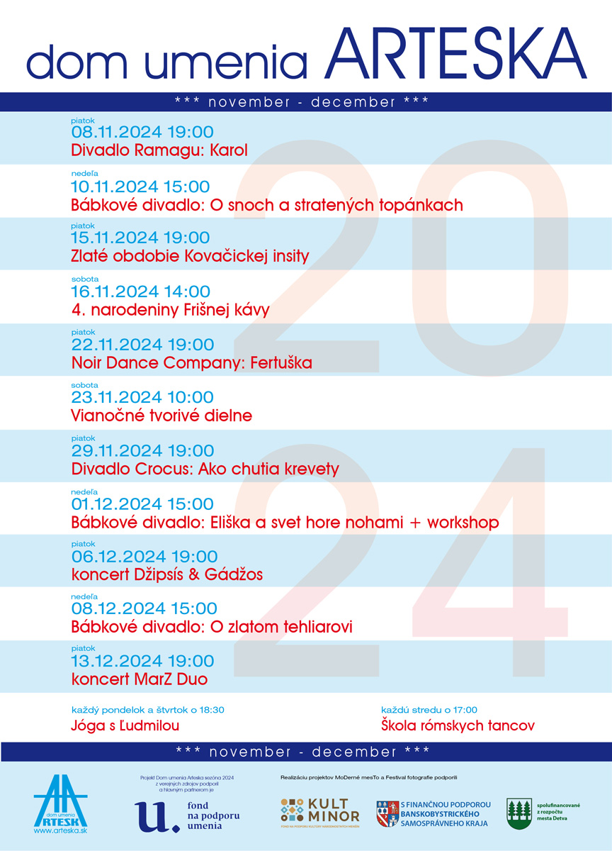 Program v Arteske od novembra do decembra