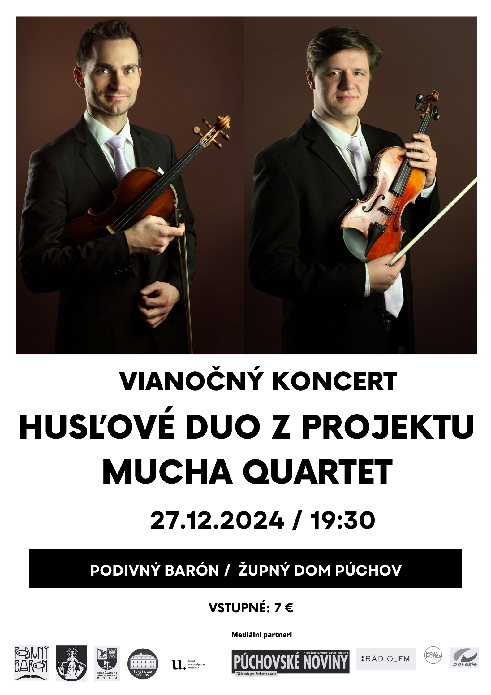 Srdečne vás pozývame na komorný vianočný koncert Juraja Tomka a Jozefa Ostroluckého z projektu Muchaquartet.