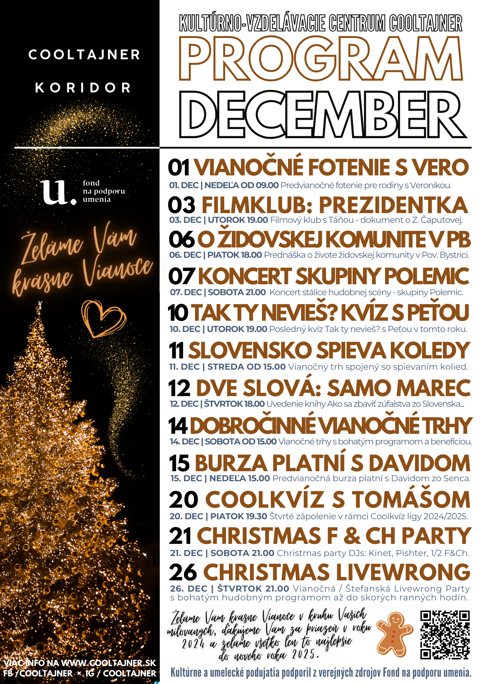 Pozývame vás na decembrový program v kultúrno-vzdelávacom centre Cooltajner.