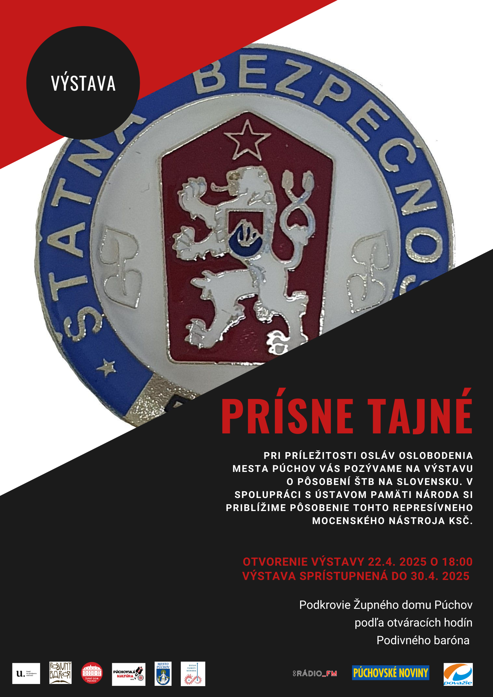 Pri príležitosti Osláv oslobodenia mesta Púchov Vás pozývame na výstavu o pôsobení ŠTB na Slovensku. V spolupráci s Ústavom pamäti národa si priblížime pôsobenie tohto represívneho mocenského nástroja KSČ.