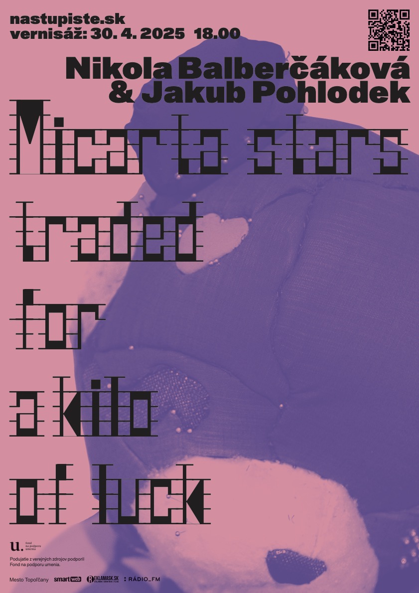 Otvorenie výstavy AUTORSTVO VÝSTAVY: Nikola Balberčáková & Jakub Pohlodek NÁZOV: Micarta stars traded for a kilo of luck DÁTUM: 30. 4. 2025,18:00 MIESTO: Nástupište 1-12, podchod AS Topoľčany