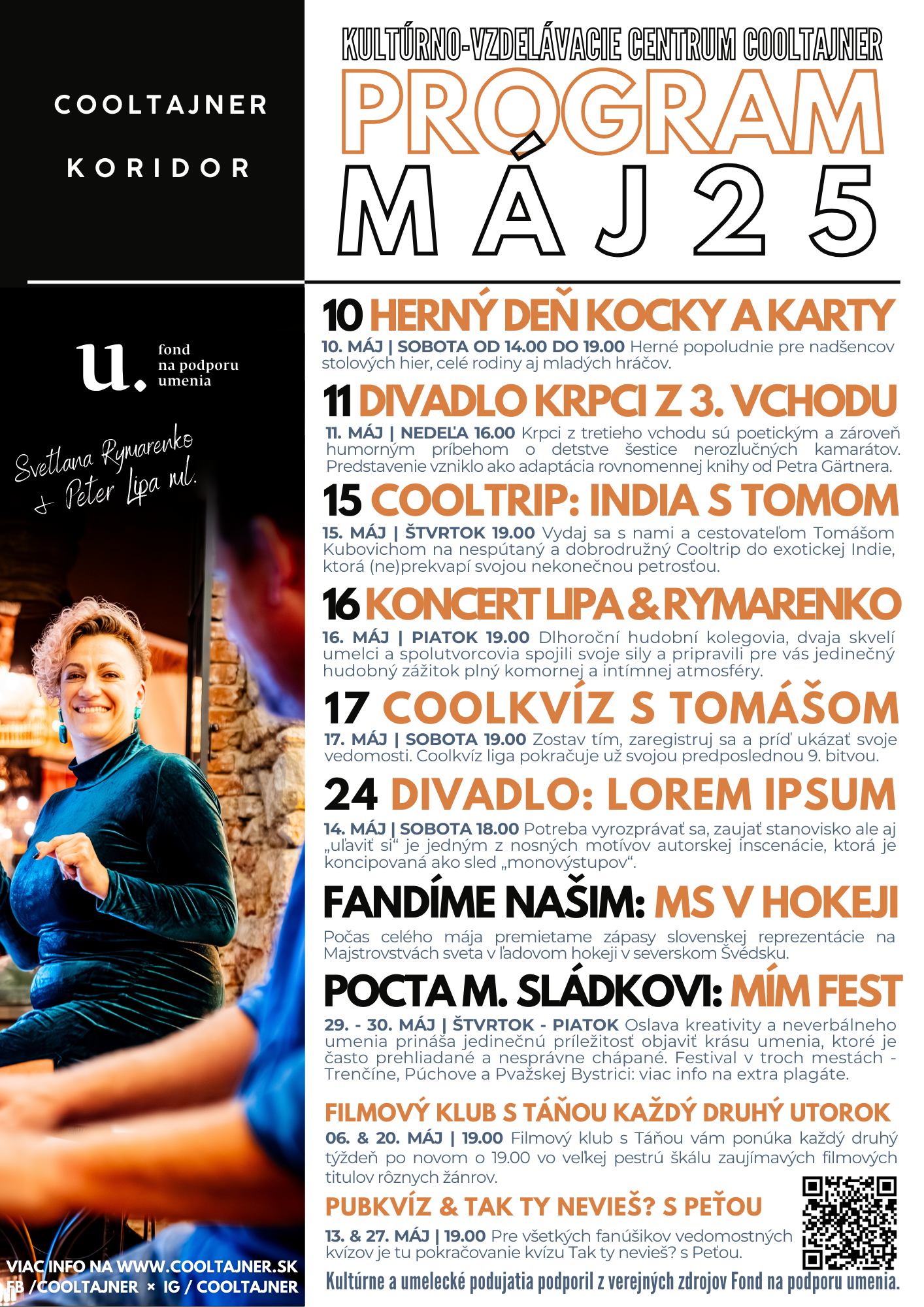 Pozývame vás na májový program Kultúrneho centra Cooltajner.