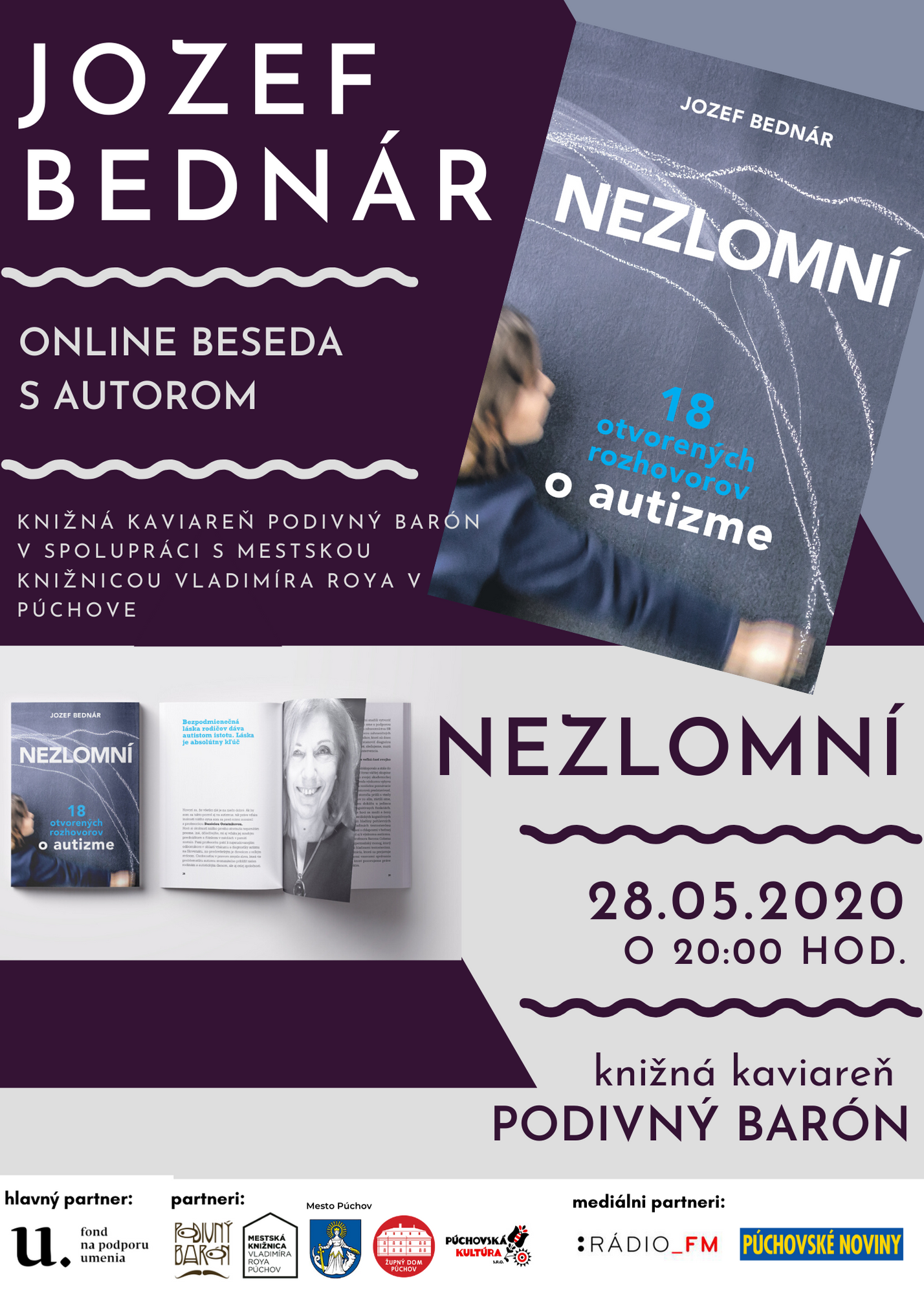 Online diskusia s autorom Jozefom Bednárom o knihe Nezlomní, ktorá nám prostredníctvom 18 otvorených rozhovorov otvorí dvere do komplikovanej, tabuizovanej a mýtmi opradenej problematiky, ktorá sa týka tisícok slovenských rodín.