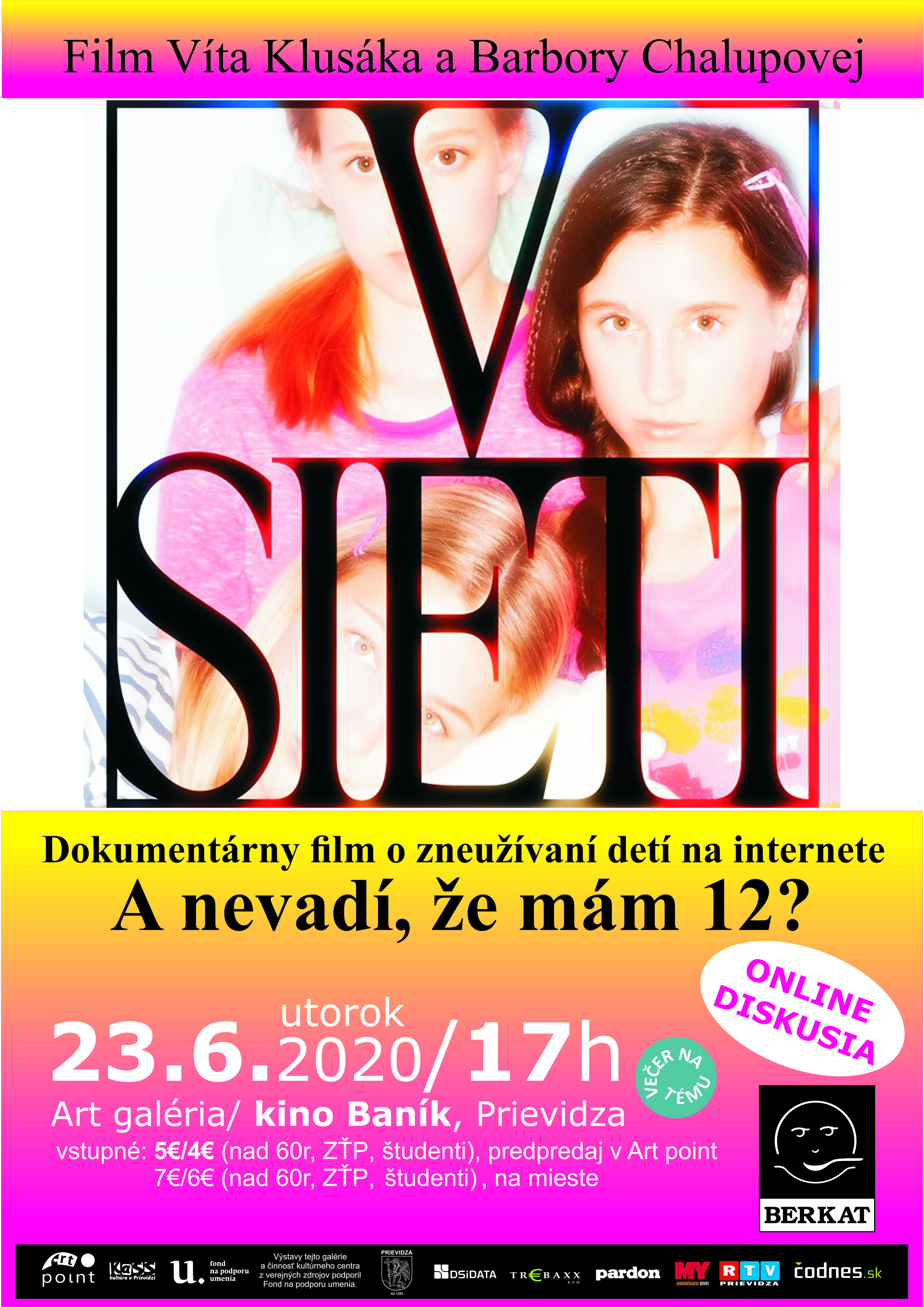 Dokumentárny film Víta Klusáka a Barbory Chalupovej o zneužívaní deti na internete je najnavštevovanejší český dokument, za prvý týždeň v kinách ho videlo 179 139 divákov! V SIETI B. Chalupová, V. Klusák / ČR / 2019 / 100 min. * Pozor, prístupné od 15 rokov! + po skončení premietania sa pokúsime o ONLINE DISKUSIU S AUTORMI FILMU