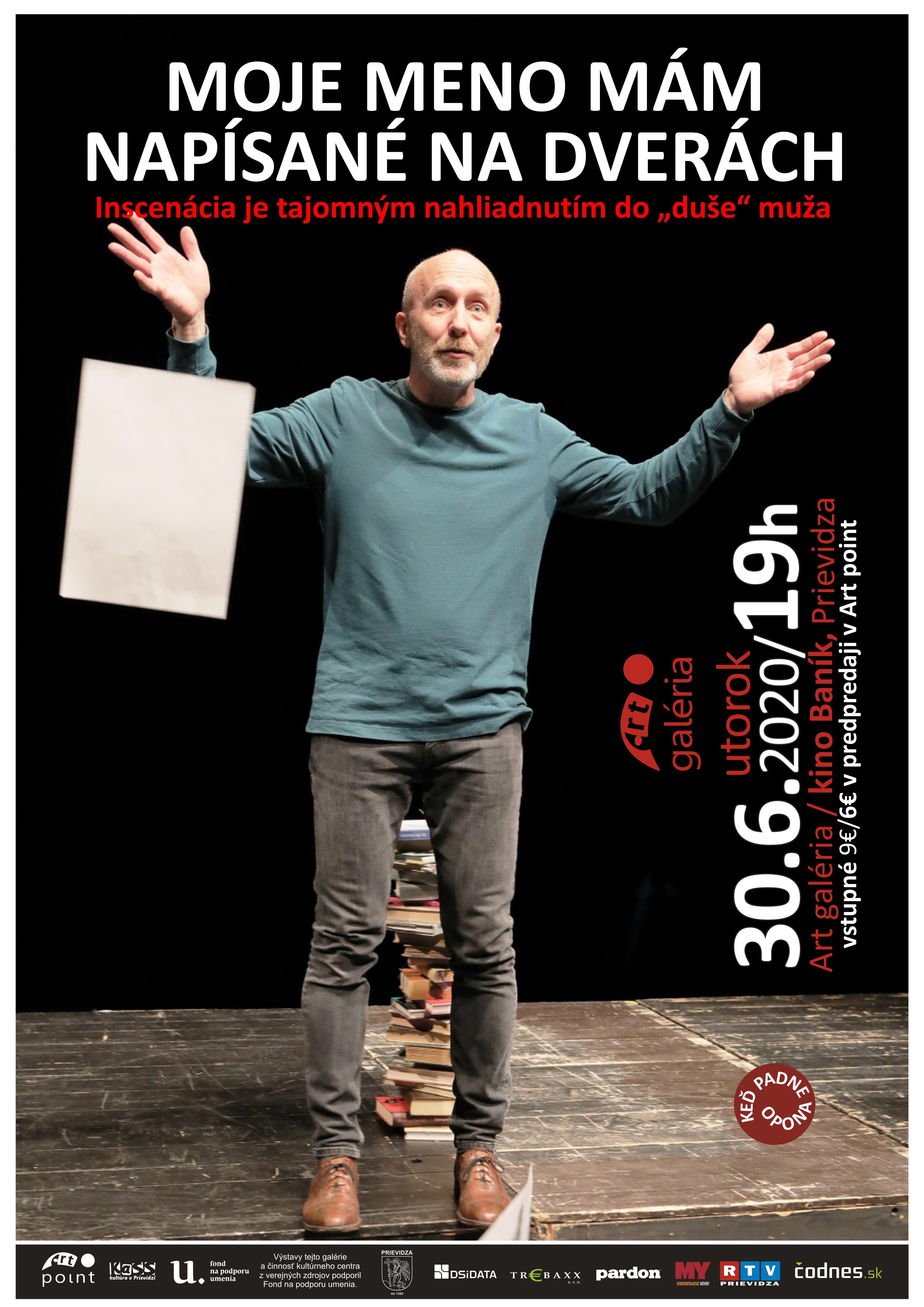Divadelná inscenácia: Moje meno mám napísané na dverách, je tajomným nahliadnutím do „duše“ muža, ktorý cíti potrebu rozprávať o sebe, svojich láskach a snoch, prehrách a výhrach v živote. Ochote podeliť sa o spomienky a prežívané. Nebyť pri tom sám a nájsť pochopenie. Samotný príbeh je čiastočne detektívnou zápletkou, keď divák sa snaží intuitívne ako aj logickou dedukciou špecifikovať, čo je a bolo skutočnosť a čo fikcia.