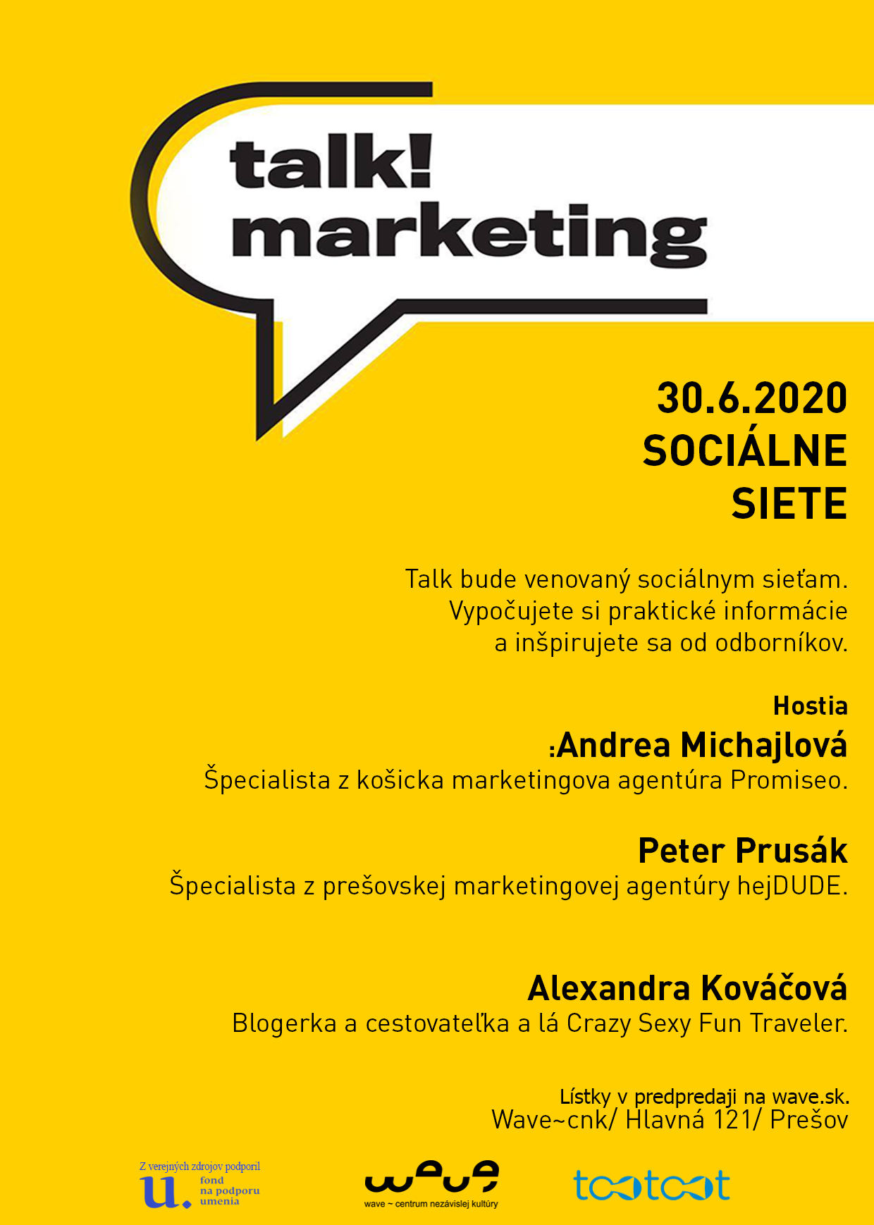 O tri mesiace neskôr, ale predsa. Druhý talk! marketing v Prešove bude za menších obmedzení, no v plnom nasadení :-) Ako bolo plánované, tento talk bude venovaný sociálnym sieťam. Vypočujete si praktické informácie a inšpirujete sa od odborníkov.