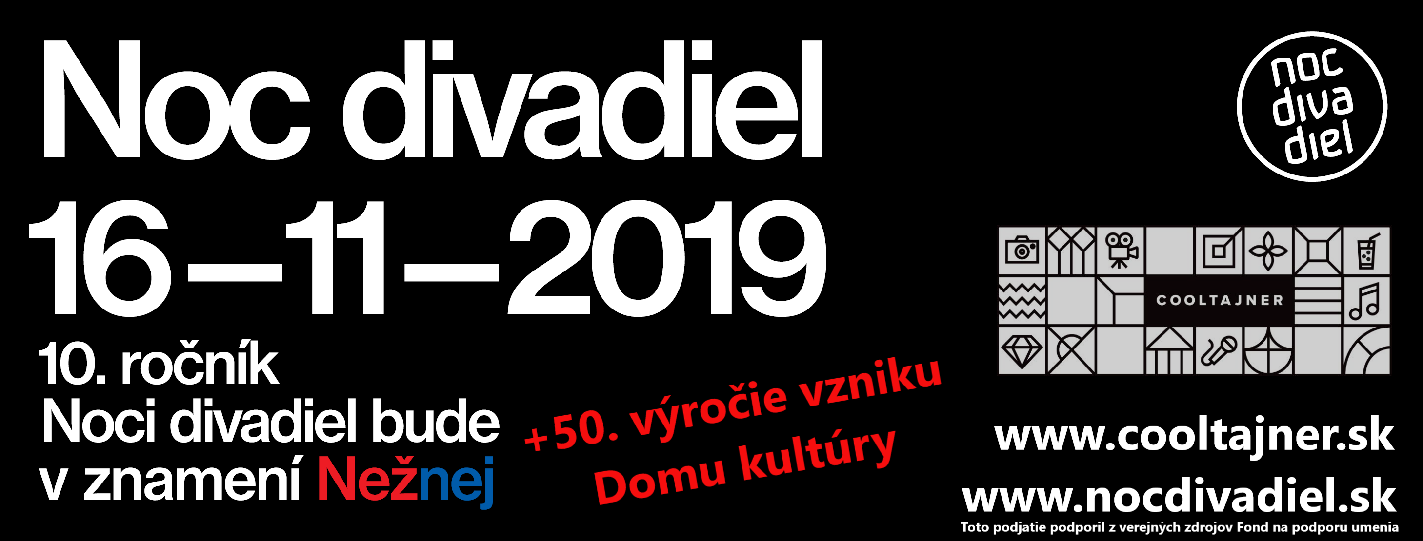 Jubilejný 10. ročník celoeurópskeho podujatia Noc divadiel po tretíkrát v Považskej Bystrici! Tento rok sa odohrá počas dvoch dní až v troch priestoroch. Týmto podujatím si zároveň pripomenieme 50. výročie otvorenia Domu kultúry v Považskej Bystrici a 30. výročie Nežnej revolúcie.