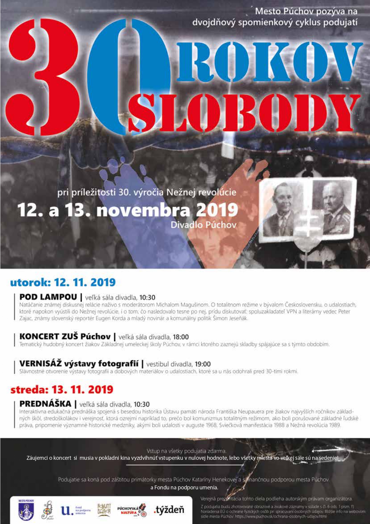 Mesto Púchov pozýva na dvojdňový spomienkový cyklus pri príležitosti 30. výročia Nežnej revolúcie.