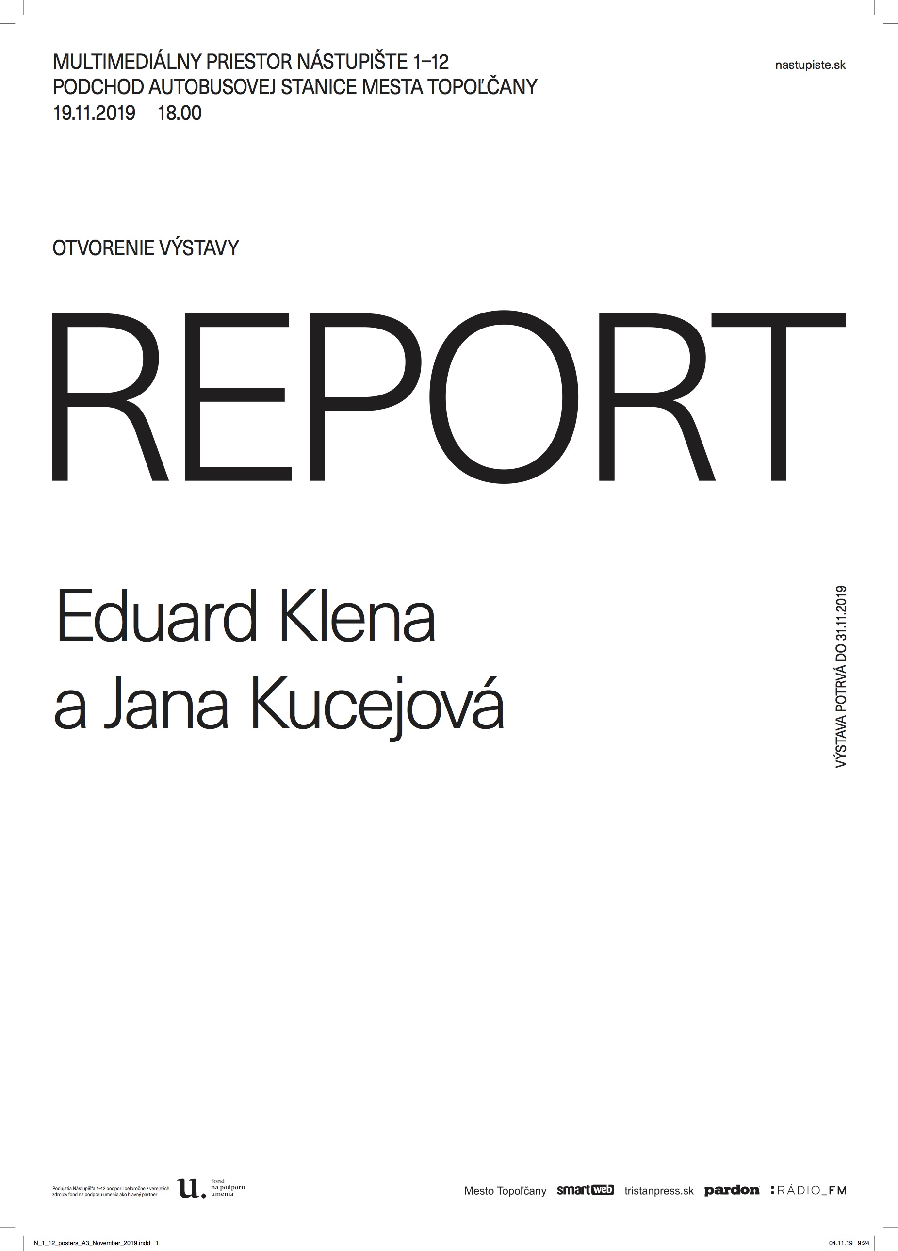 Multimediálny priestor pre súčasnú kultúru Nástupište 1-12, podchod AS Topoľčany pozýva na otvorenie výstavy 19.11.2019 o 18:00 Eduard Klena a Jana Kucejová: Report.
