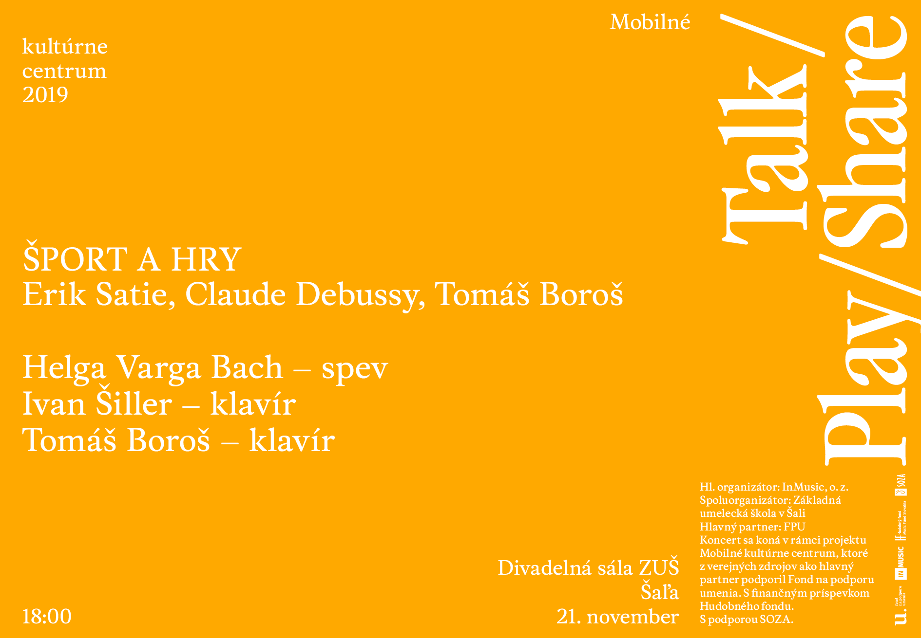Mobilné kultúrne centrum prichádza do Šale! Príďte stráviť pekný čas s hudbou v podaní Helgy Vargy Bach, Tomáša Boroša a Ivana Šillera. Vo štvrtok 21. novembra o 18:00 na miestnej ZUŠ.