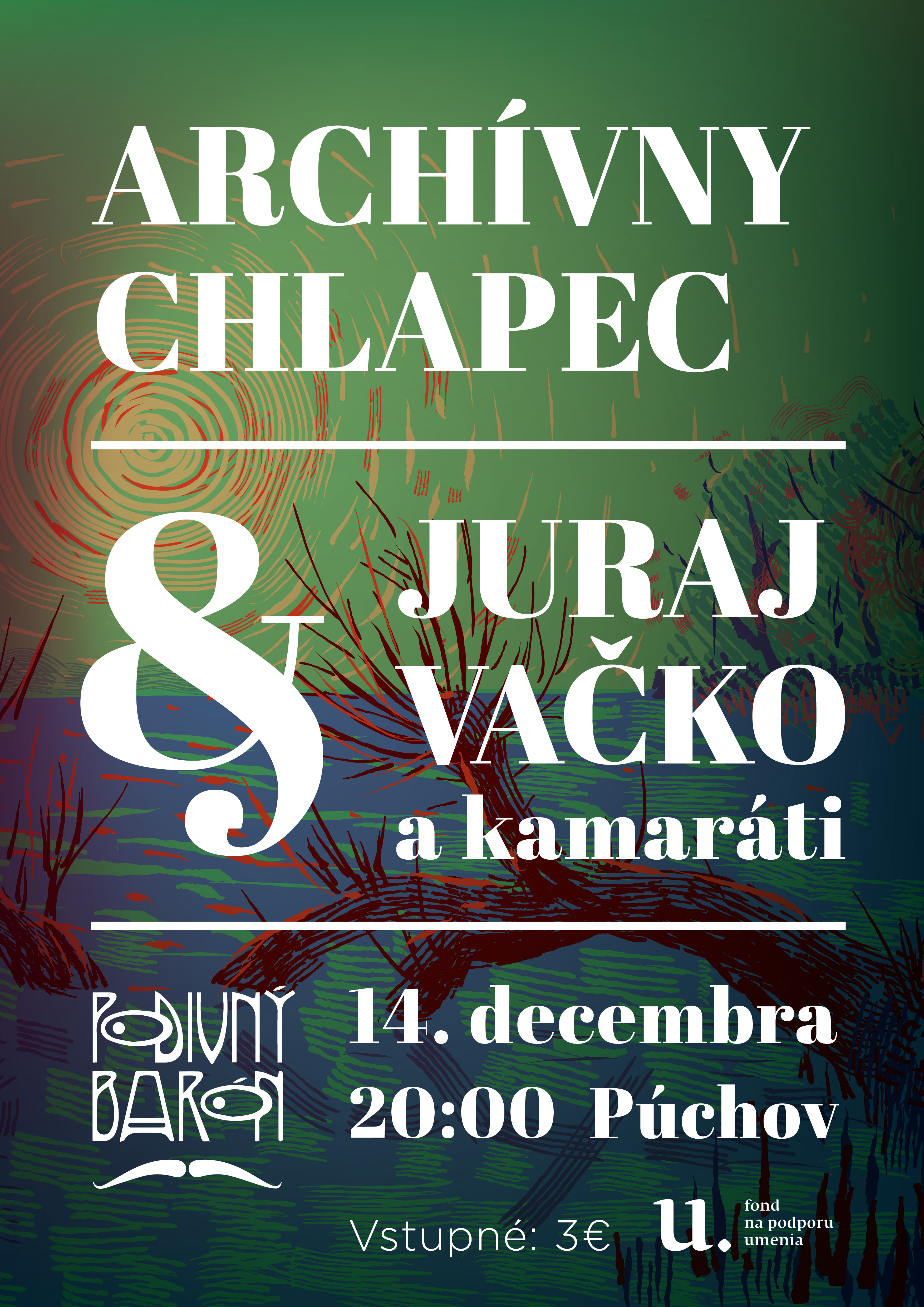 Pozývame vás na príjemný decembrový vianočný komorný koncert, ktorý sa uskutoční v čitárni Župného domu. Tentokrát sa u nás v Púchove po dlhšej odmlke predstaví svojský interpret Archívny chlapec, ktorý sa hudobne, ale aj textovo neustále prekračuje. Ako hosť vystúpi hneď na úvod folkový interpret Juraj Vačko s kamarátmi, ktorého môžete poznať z našich obľúbených folkových večerov.