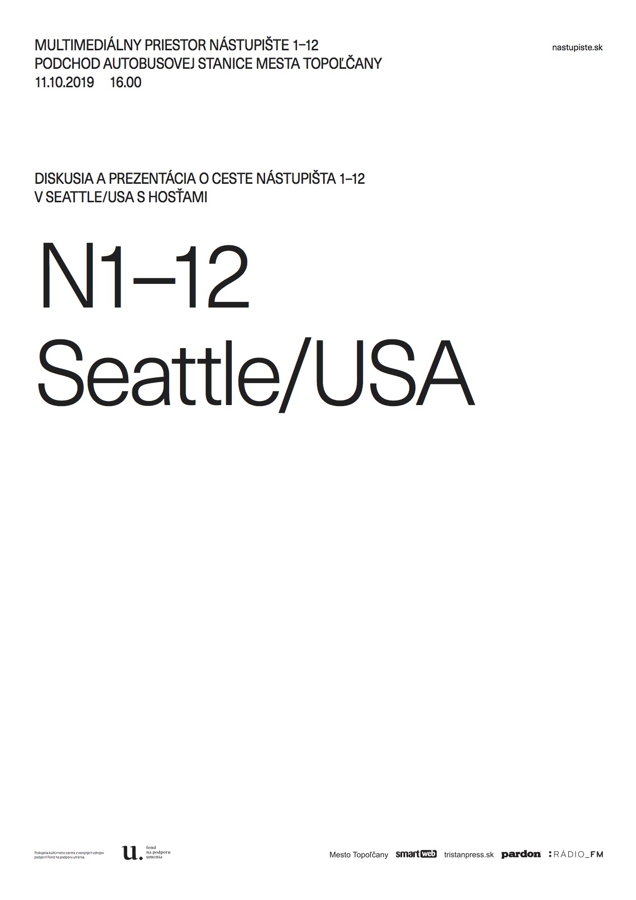 Multimediálny priestor pre súčasnú kultúru pozýva v piatok 11.10.2019 o 16:00 na prezentáciu cesty Nástupišťa v USA Dikutovať bude Zuzana Novotová Godálová a hostia zúčastnení na pracovnej ceste.