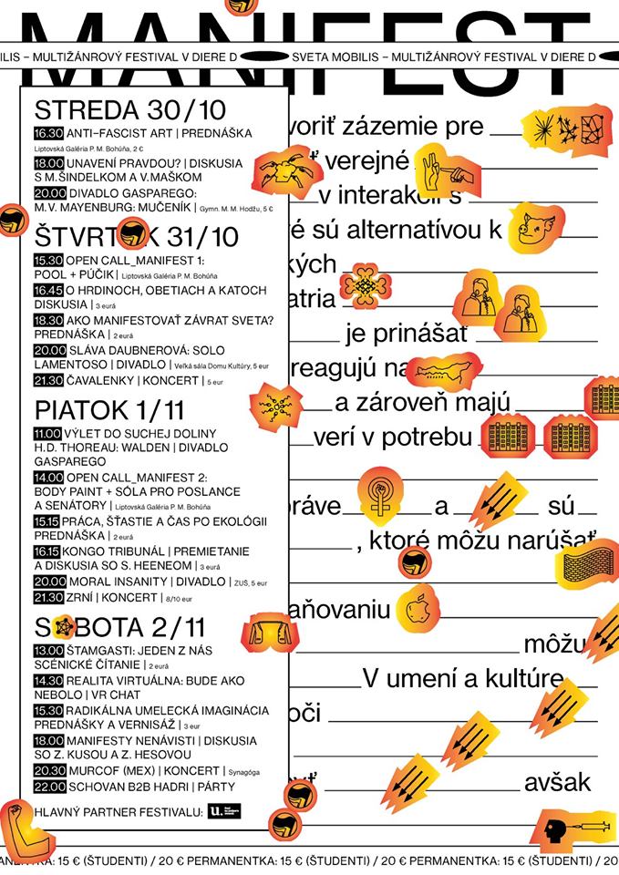 Festival Mobilis je multi-žánrový umelecký festival, ktorý sa koná v kultúrnom centre Diera do sveta v Liptovskom Mikuláši od 30. októbra do 2. Novembra, tentokrát s témou Manifest.