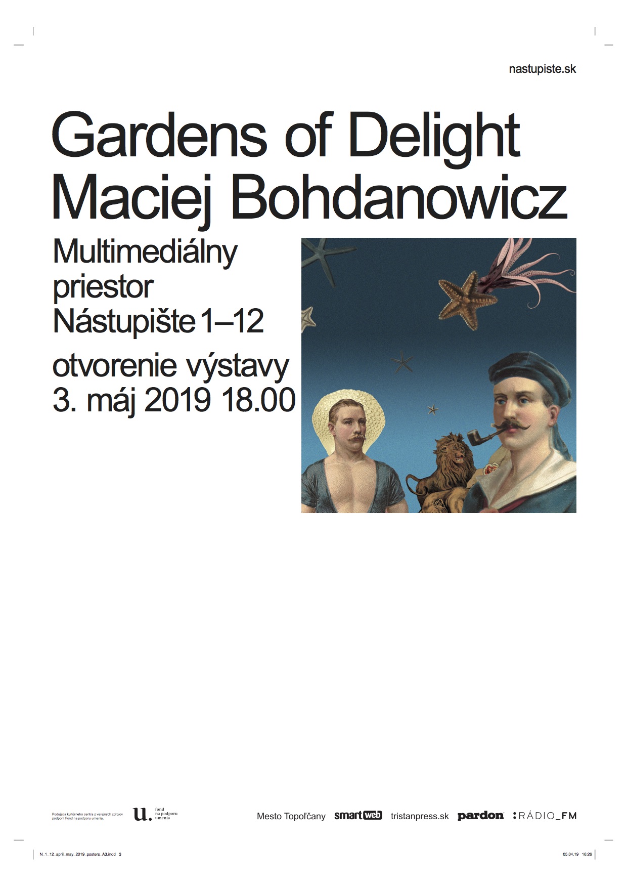Gardens of Delight otvorenie výstavy Multimediálny priestor pre súčasnú kultúru Nástupište 1-12, podchod autobusovej stanice v Topoľčanoch, 3.máj 2019 o 18h na otvorenie výstavy Gardens of Delight. Maciej Bohdanowicz /PL