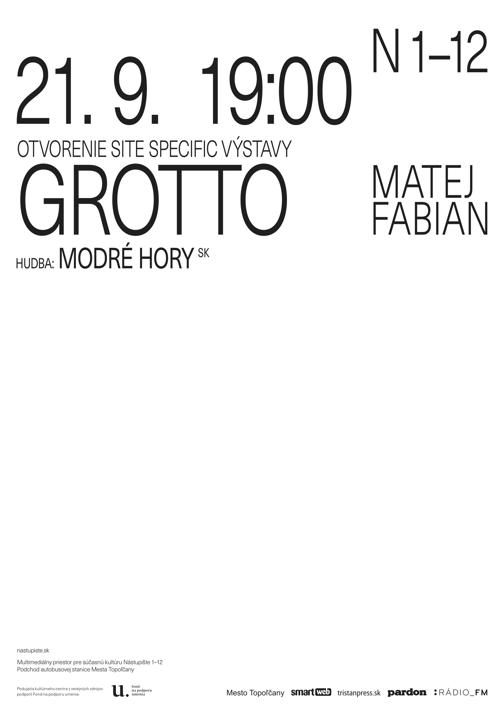 Multimediálny priestor pre súčasnú kultúru Nástupište 1-12 podchod autobusovej stanice v Topoľčanoch pozýva v piatok 21.septembra 2018 o 19h na otvorenie vystavy "Grotto" autor: Matej Fabian Hudba : Modré Hory